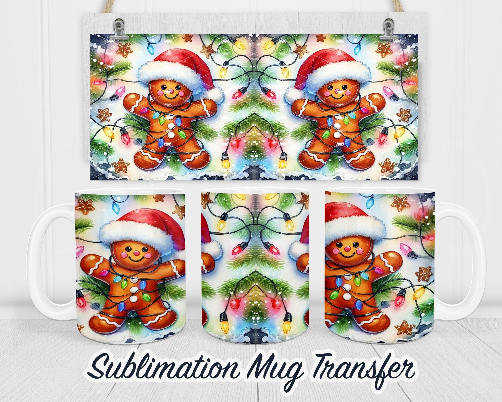 Gingerbread Man Christmas -Sublimation Mug Transfer Print For 11 oz - 15 oz Mugs - Ready To press Heat Transfer SHIPS NEXT DAY