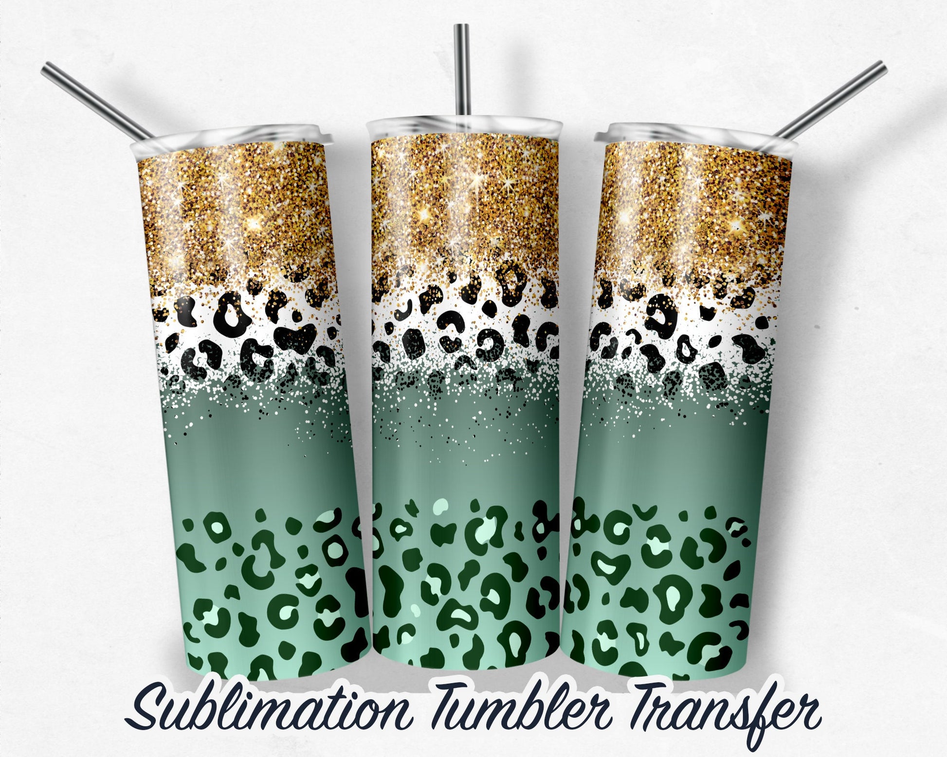 Glitter Leopard Print - Sublimation Transfer Print For 20 oz - 30 oz Skinny Tumbler - Ready To press - Heat Transfer