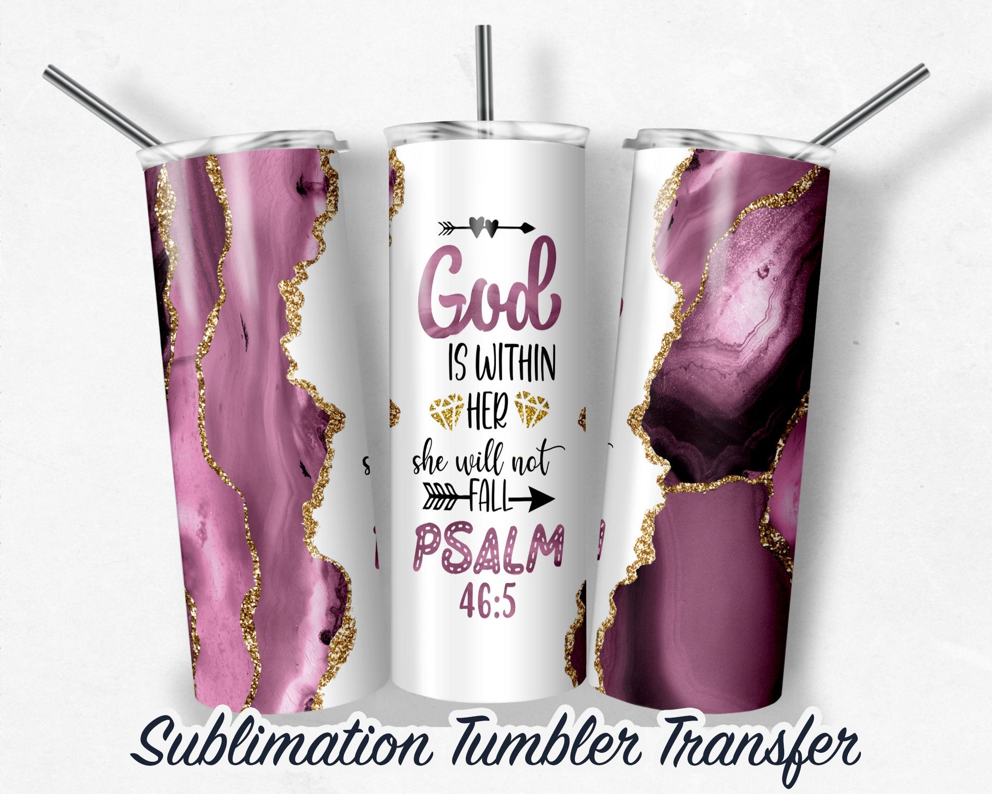 God Is Within Her Psalm 46 5 Sublimation Transfer Print For 20 oz - 30 oz Skinny Tumbler - Ready To Press