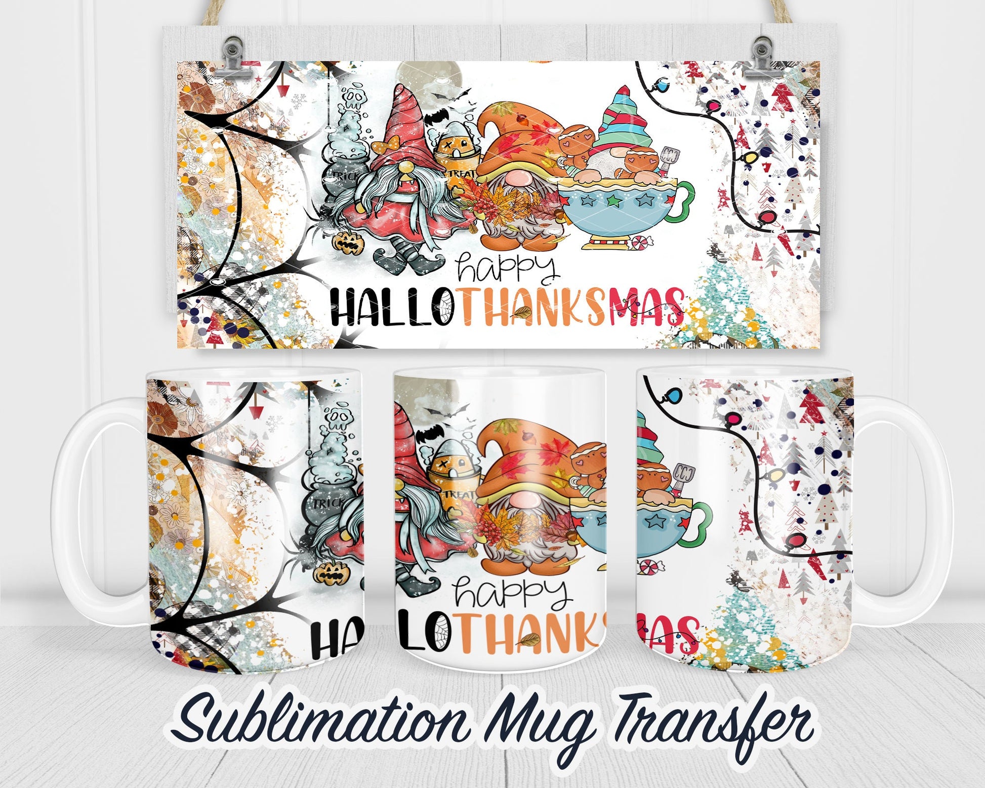 HalloThanksMas - Sublimation Transfer Print For 11 oz - 15 oz Mugs - Ready To press - Heat Transfer SHIPS NEXT DAY