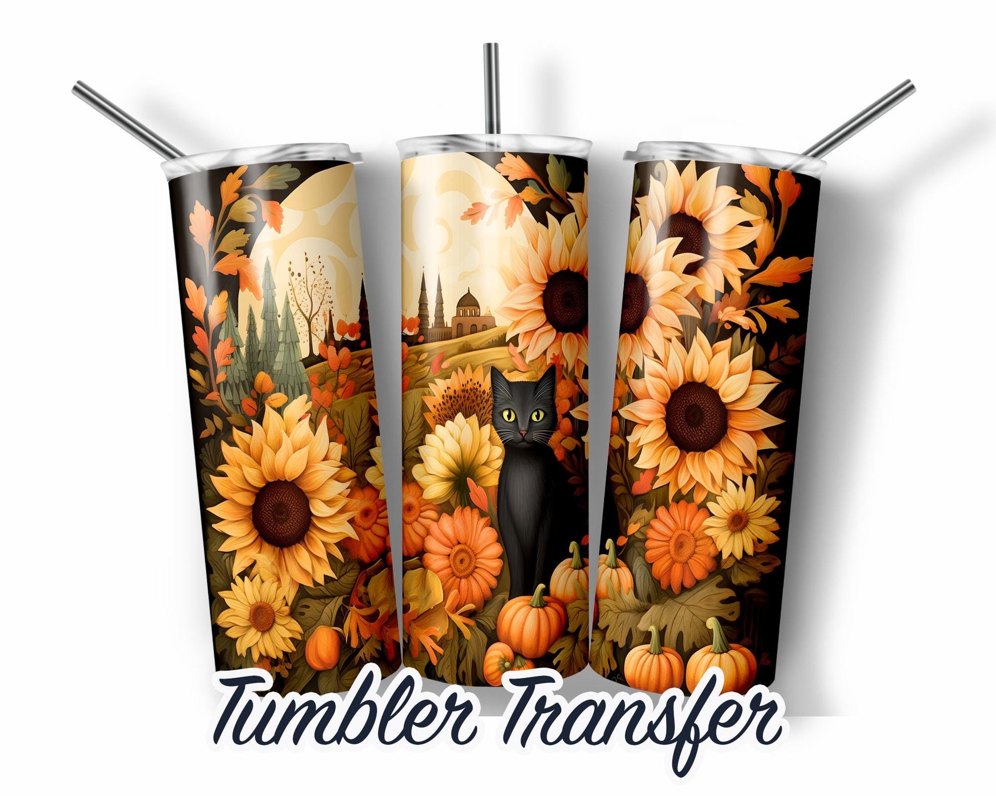Halloween Black Cat Tumbler Sublimation Transfer Print For 20oz - 30oz Skinny Tumbler - Ready To press - Heat Transfers