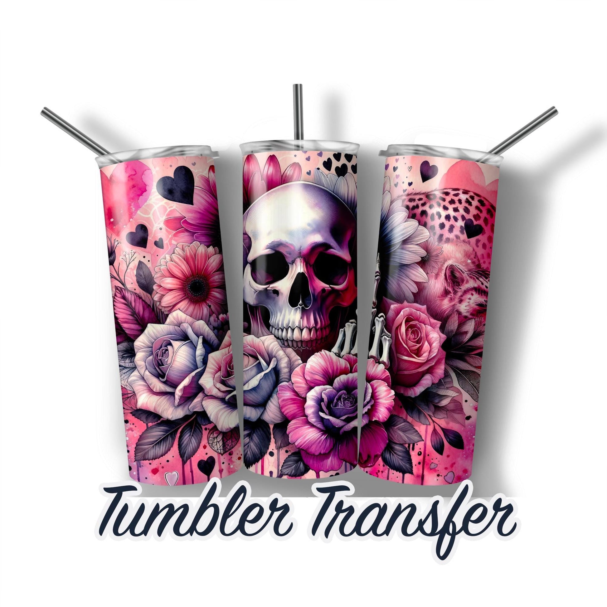 Halloween Skulls Sublimation Transfer Print For 20 oz - 30 oz Skinny Tumbler Ready To Press and Ships Next Day