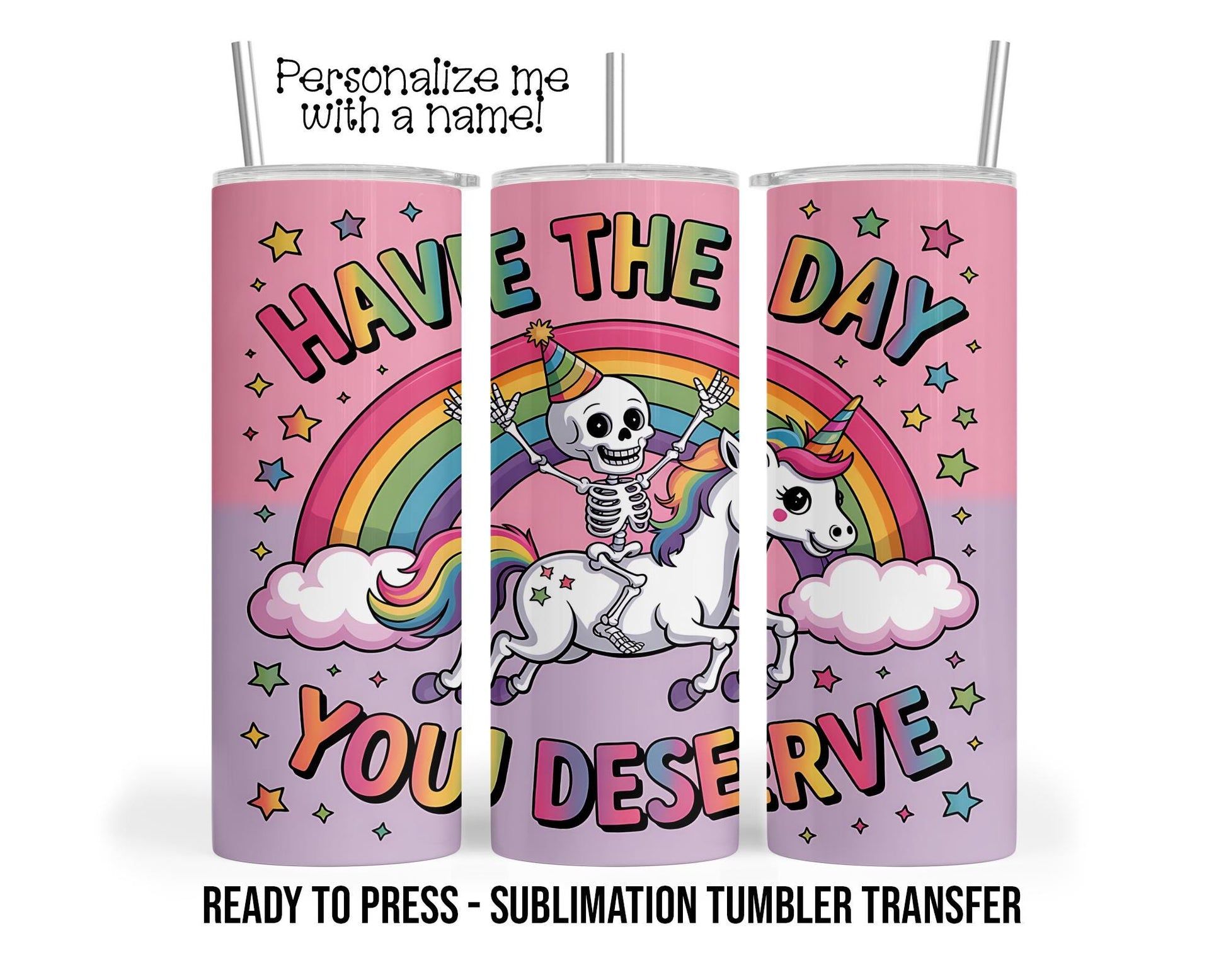 Have the Day, You Deserve, Skeleton Pony Sublimation Tumbler Transfer Print 20oz Tumbler, Ready To press Heat Transfer SHIPS NEXT DAY