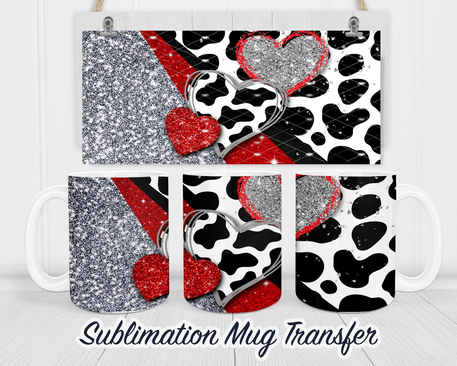 Heart Cow Print - Sublimation Transfer Print For 11 oz - 15 oz Mugs - Ready To press - Heat Transfer