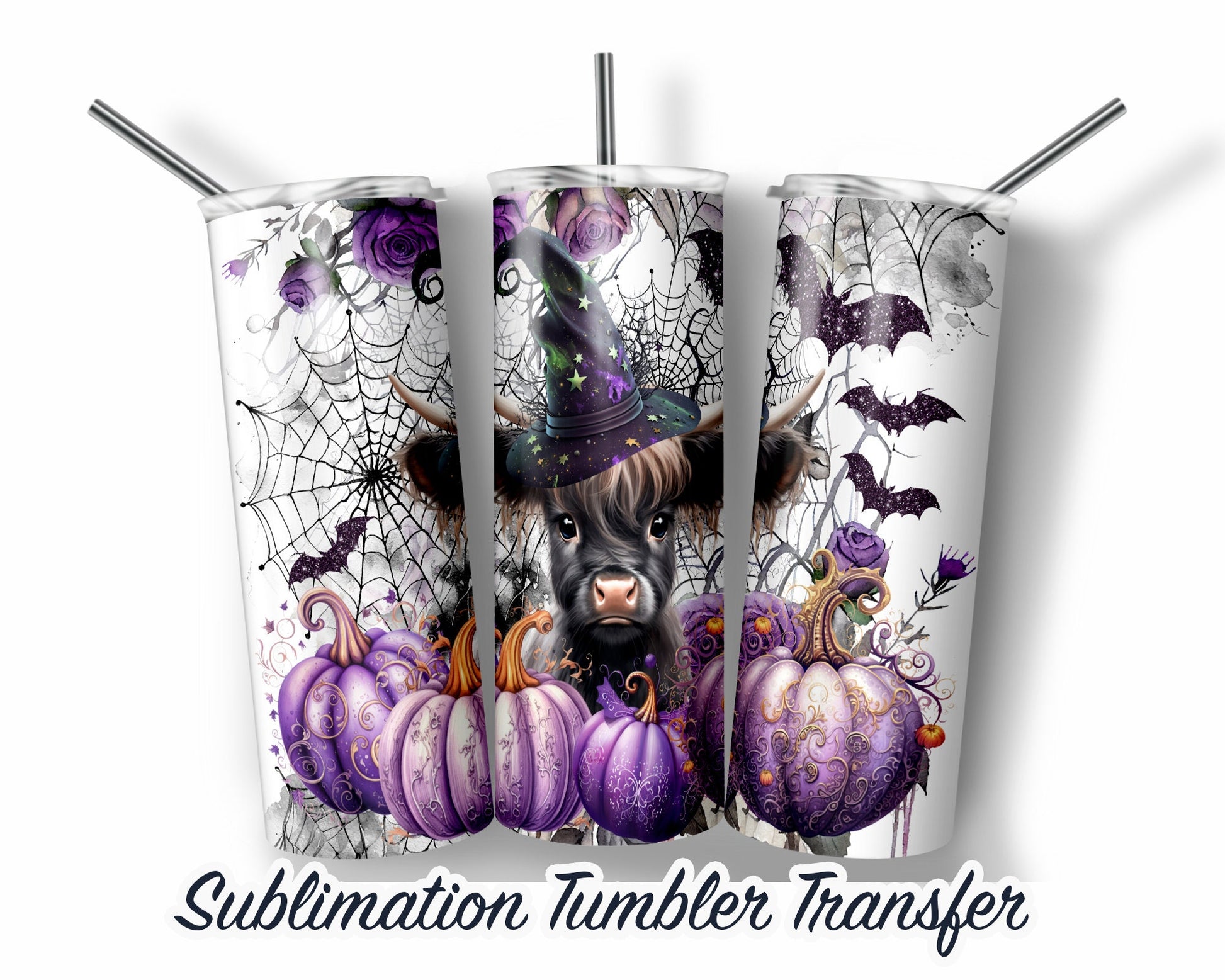 Highland Cow Halloween Sublimation Transfer Print For 20 oz Tumblers - 30 oz Tumblers - Ready To press - Heat Transfers