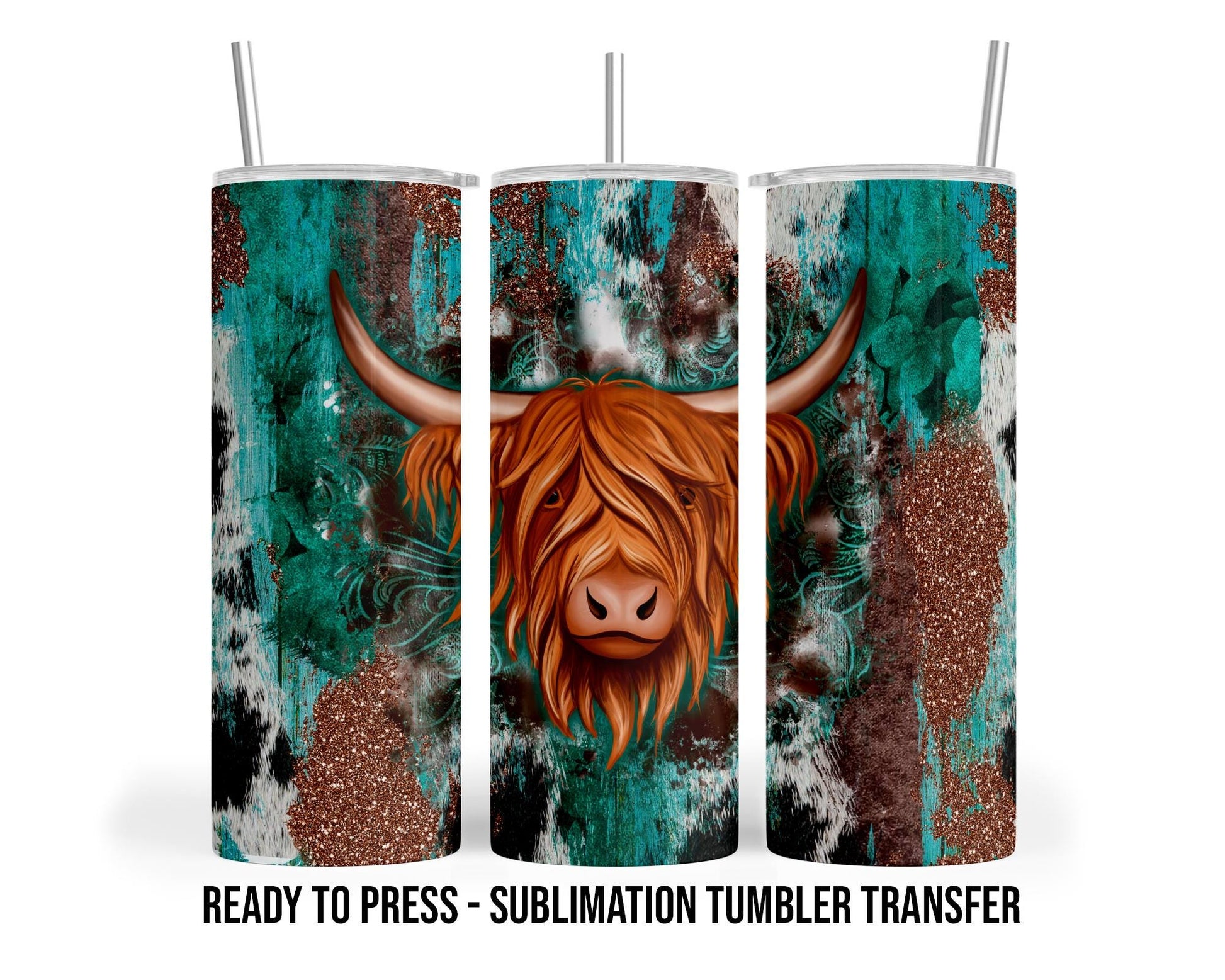 Highland Cow Sublimation Transfer Print For 20 oz Tumblers - 30 oz Tumblers - Ready To press - Heat Transfers SHIPS NEXT DAY