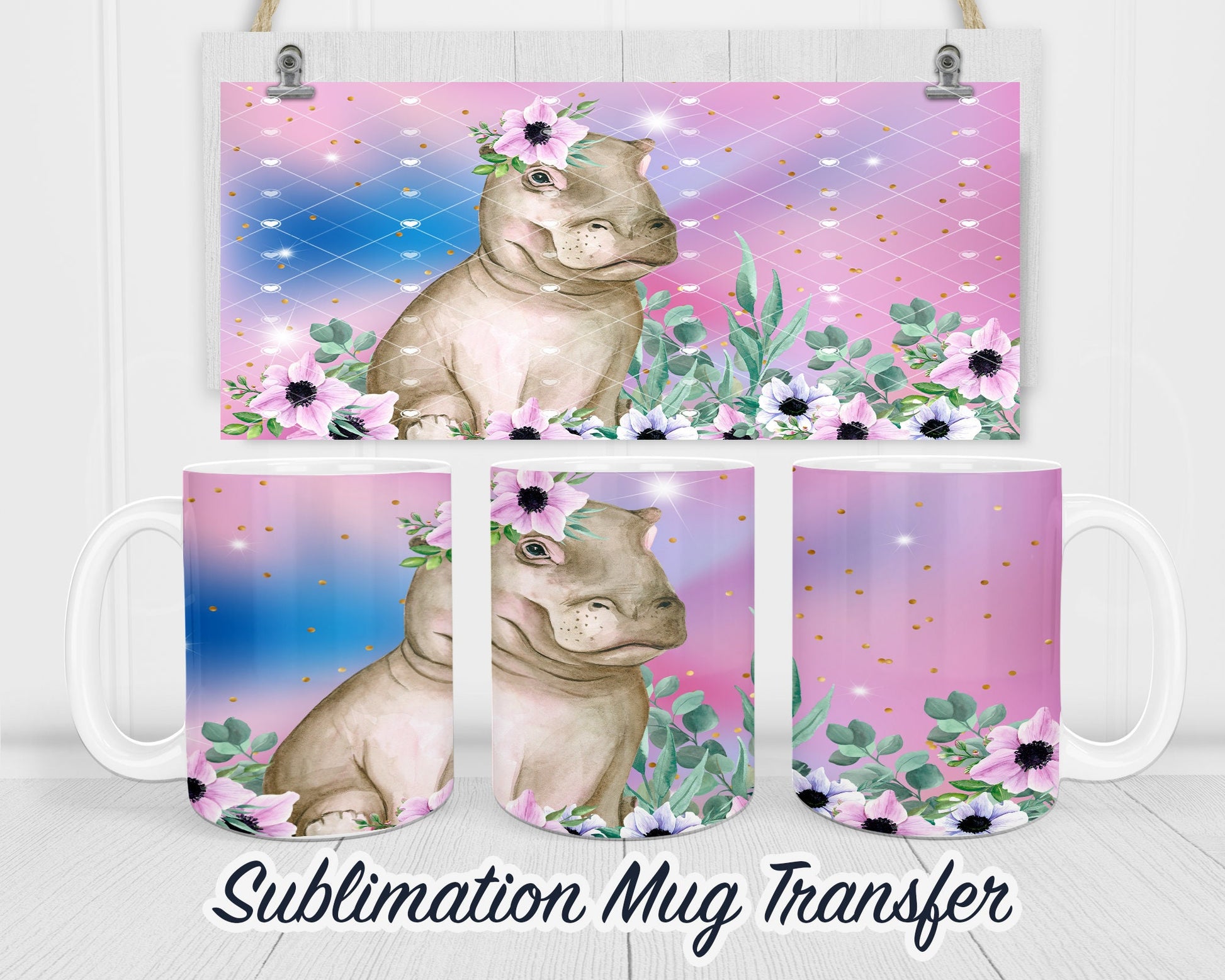Hippo - Sublimation Transfer Print For 11 oz - 15 oz Mugs - Ready To press - Heat Transfer