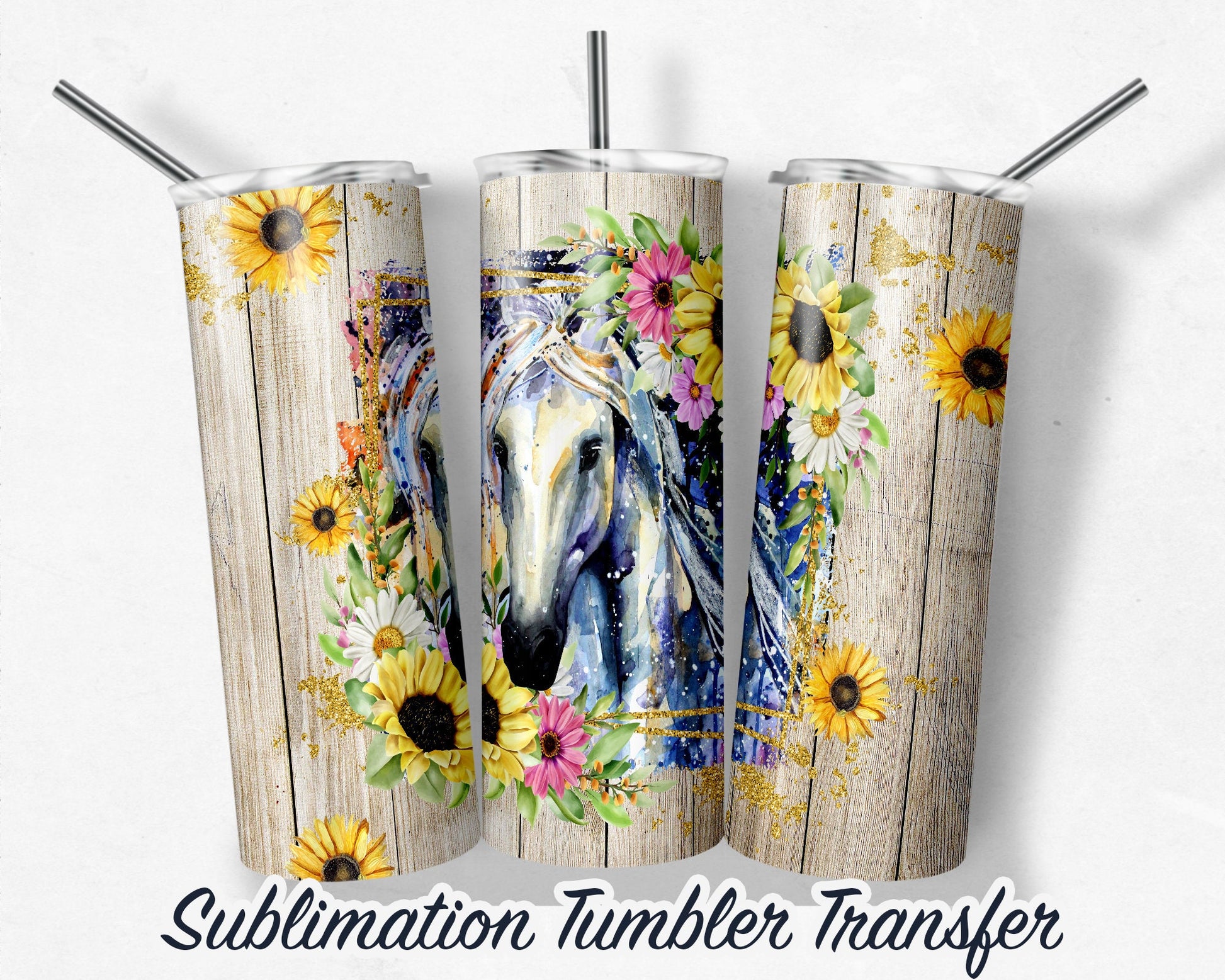 Horse with Sunflowers Sublimation Transfer Print For 20 oz Tumblers - 30 oz Tumblers - Ready To press - Heat Transfers