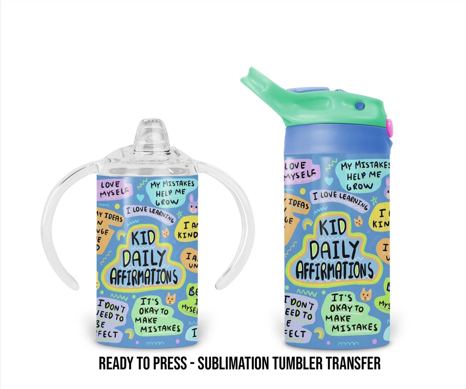 Kid Daily Affirmations, Positive Affirmations Kids 12 oz Sublimation Tumbler Transfer - Ready To press - Heat Transfers SHIPS NEXT DAY