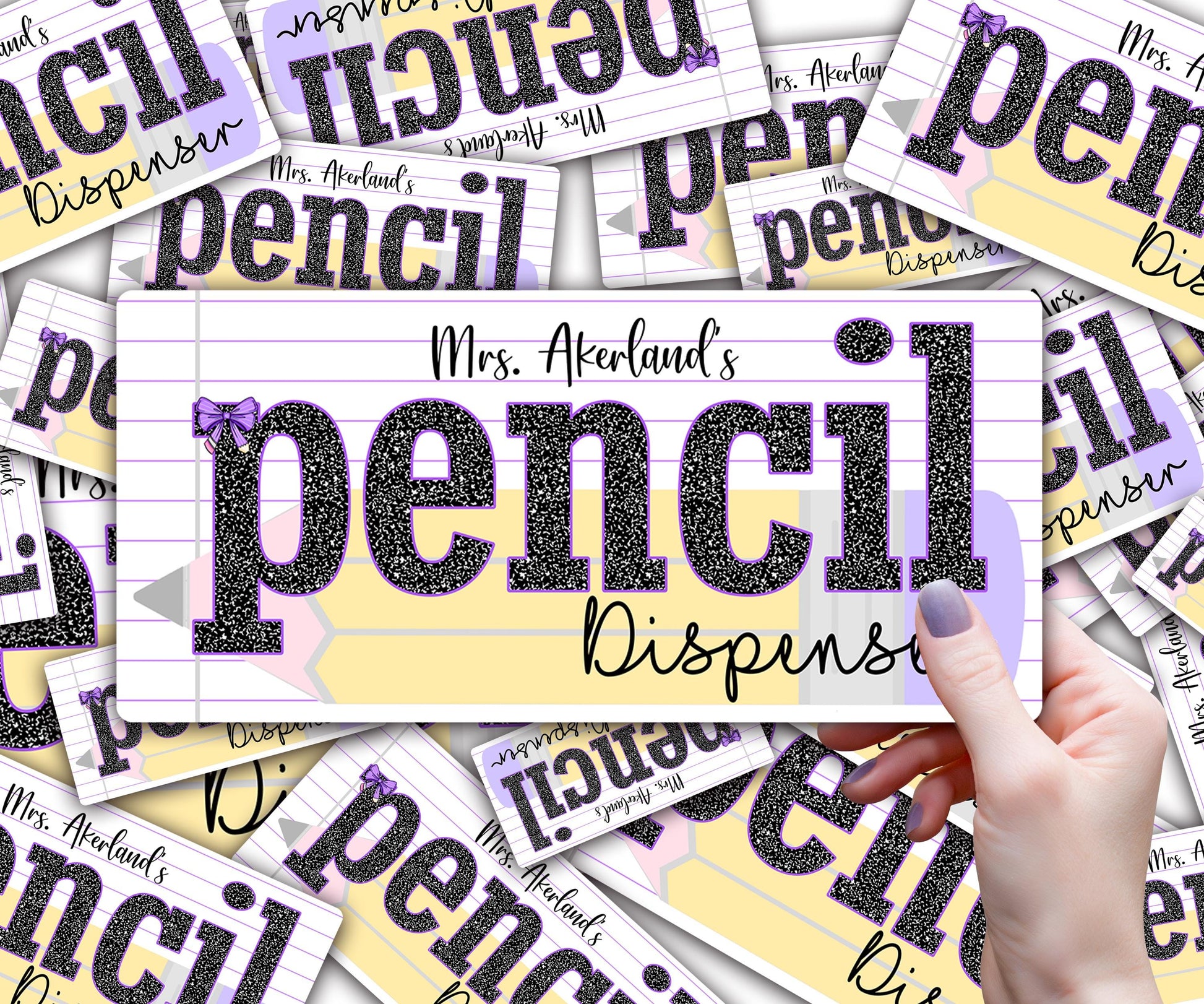 Lavender Pencil Dispenser Waterproof Vinyl Decal OR Magnetic Decal Personalized with a name, Pastel Pencil Theme, Teacher Appreciation Gift