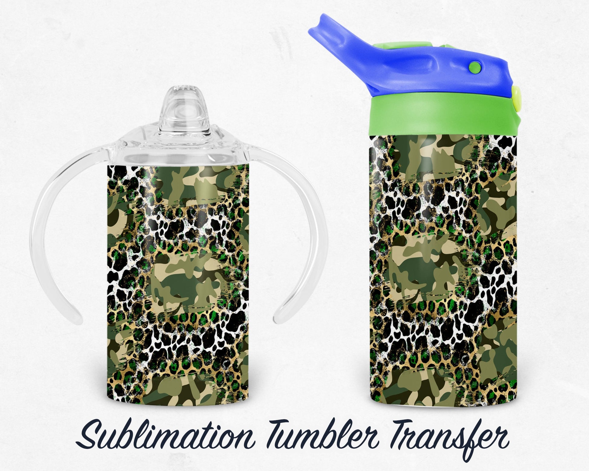 Leopard Camo - Kids 12 oz Sippy Sublimation Tumbler Transfer - Ready To press - Heat Transfers