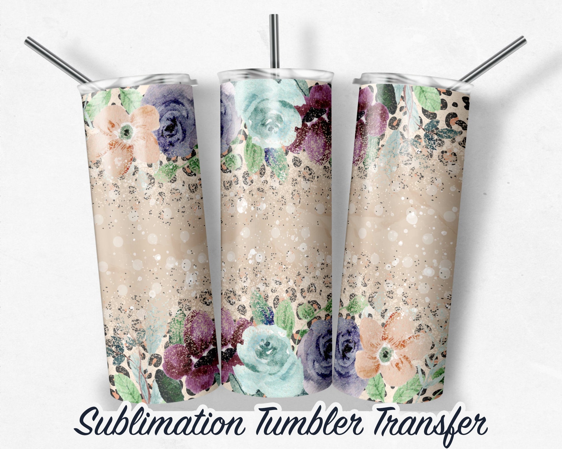 Leopard Floral Sublimation Transfer Print For 20 oz - 30 oz Tumblers - Ready to Press - Heat Transfers