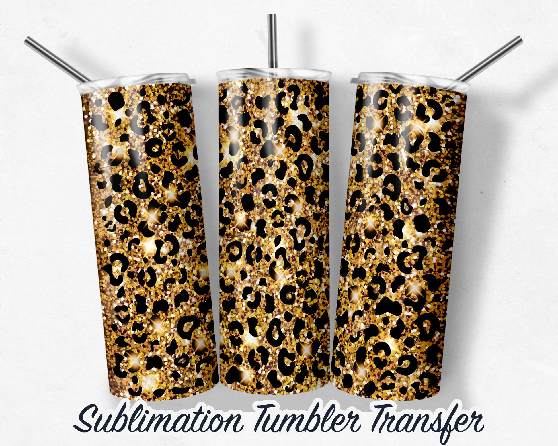 Leopard Gold Sublimation Transfer Print For 20 oz Tumbler - 30 oz Skinny Tumbler - Ready To press - Heat Transfers SHIPS NEXT DAY