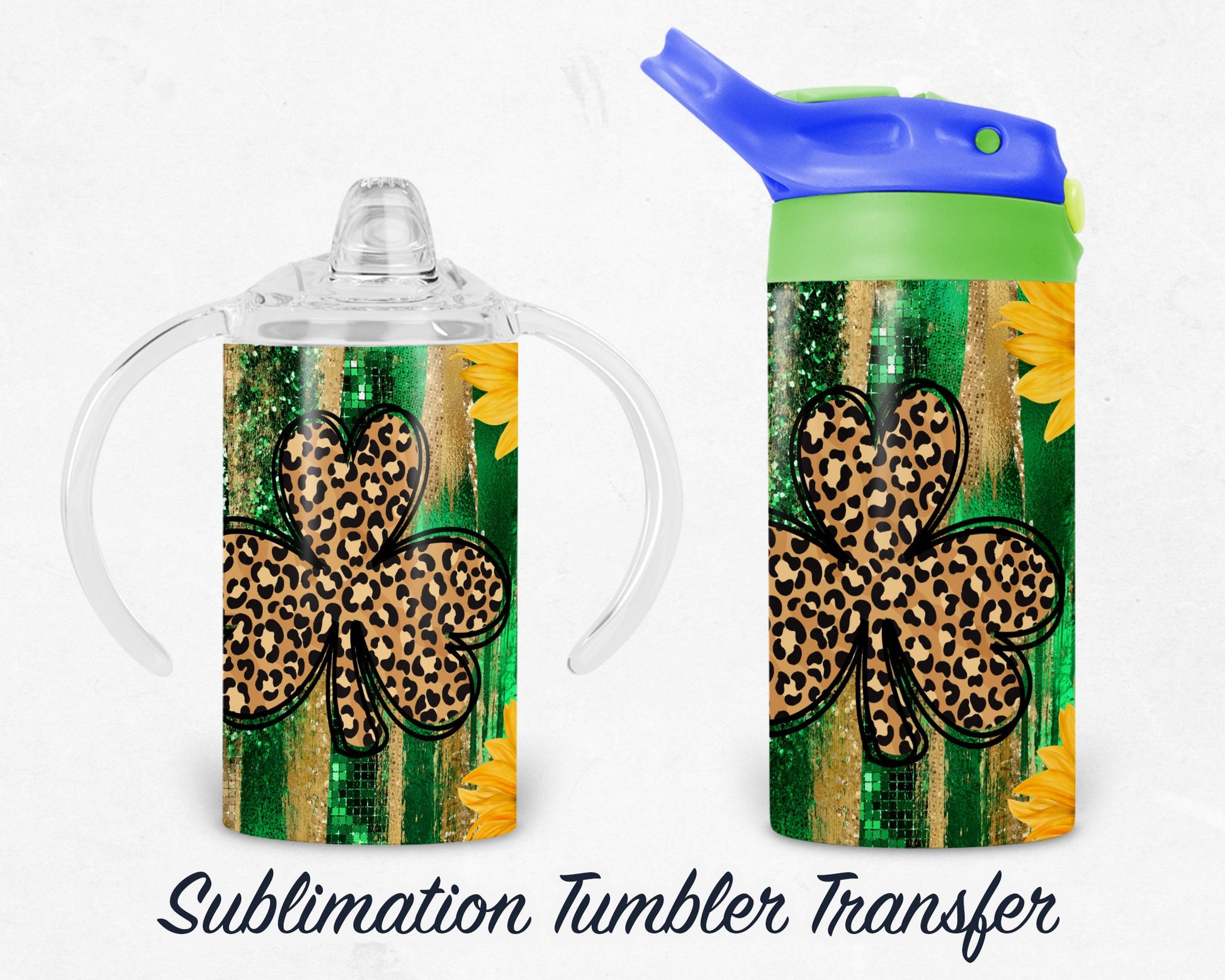 Leopard Sunflower Clover Glitter - Kids 12 oz Sippy Sublimation Tumbler Transfer - Ready To press - Heat Transfers