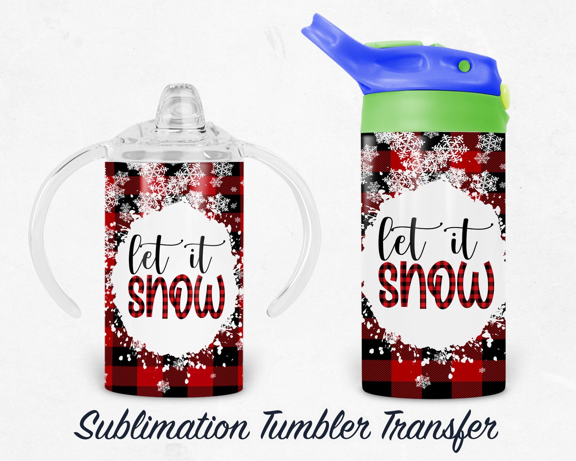 Let it Snow Kids 12 oz Sippy Sublimation Tumbler Transfer - Ready To press - Heat Transfers SHIPS NEXT DAY
