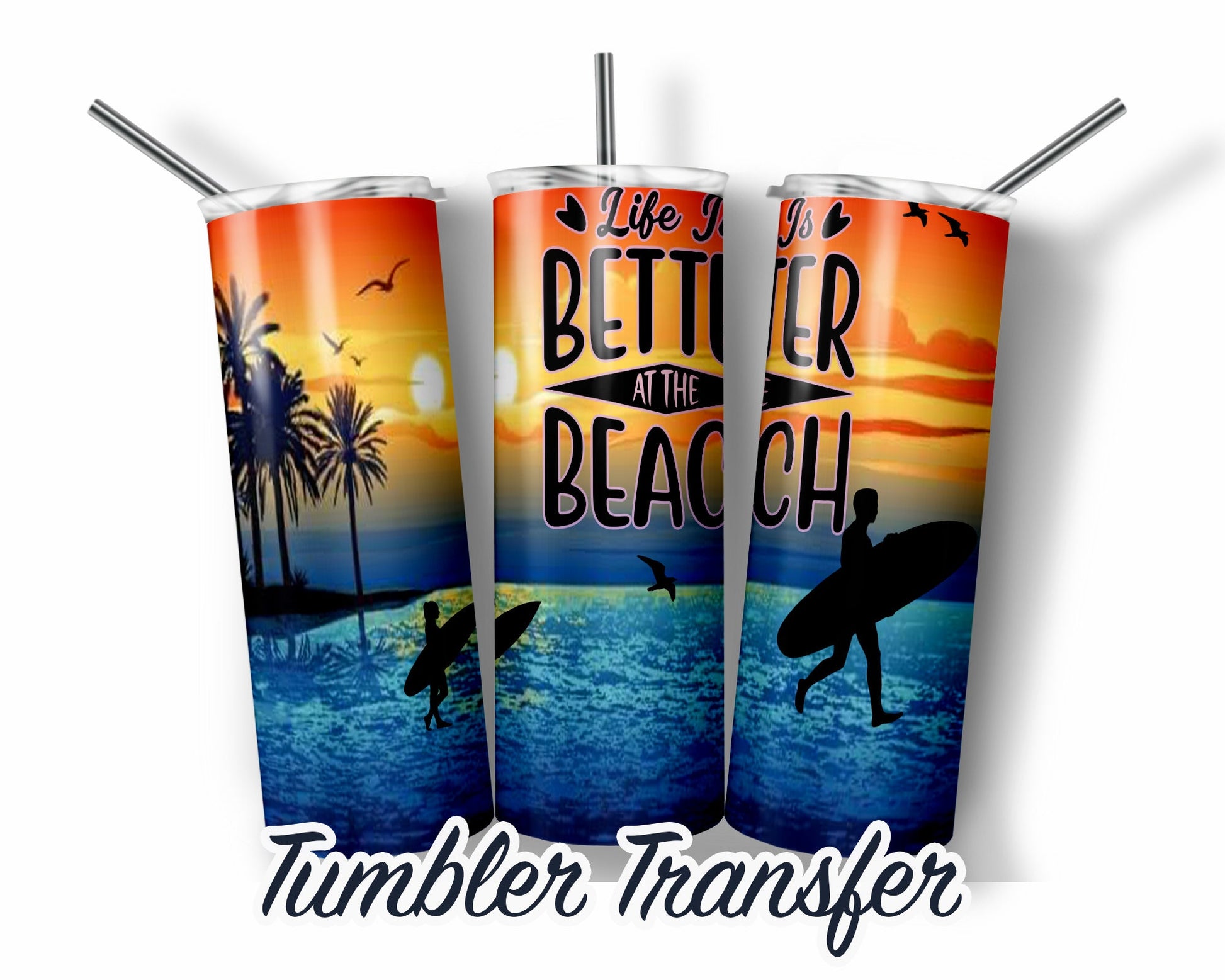 Life is Better at the Beach Sublimation Transfer Print For 20 oz - 30 oz Tumblers - Ready To press - Heat Transfers