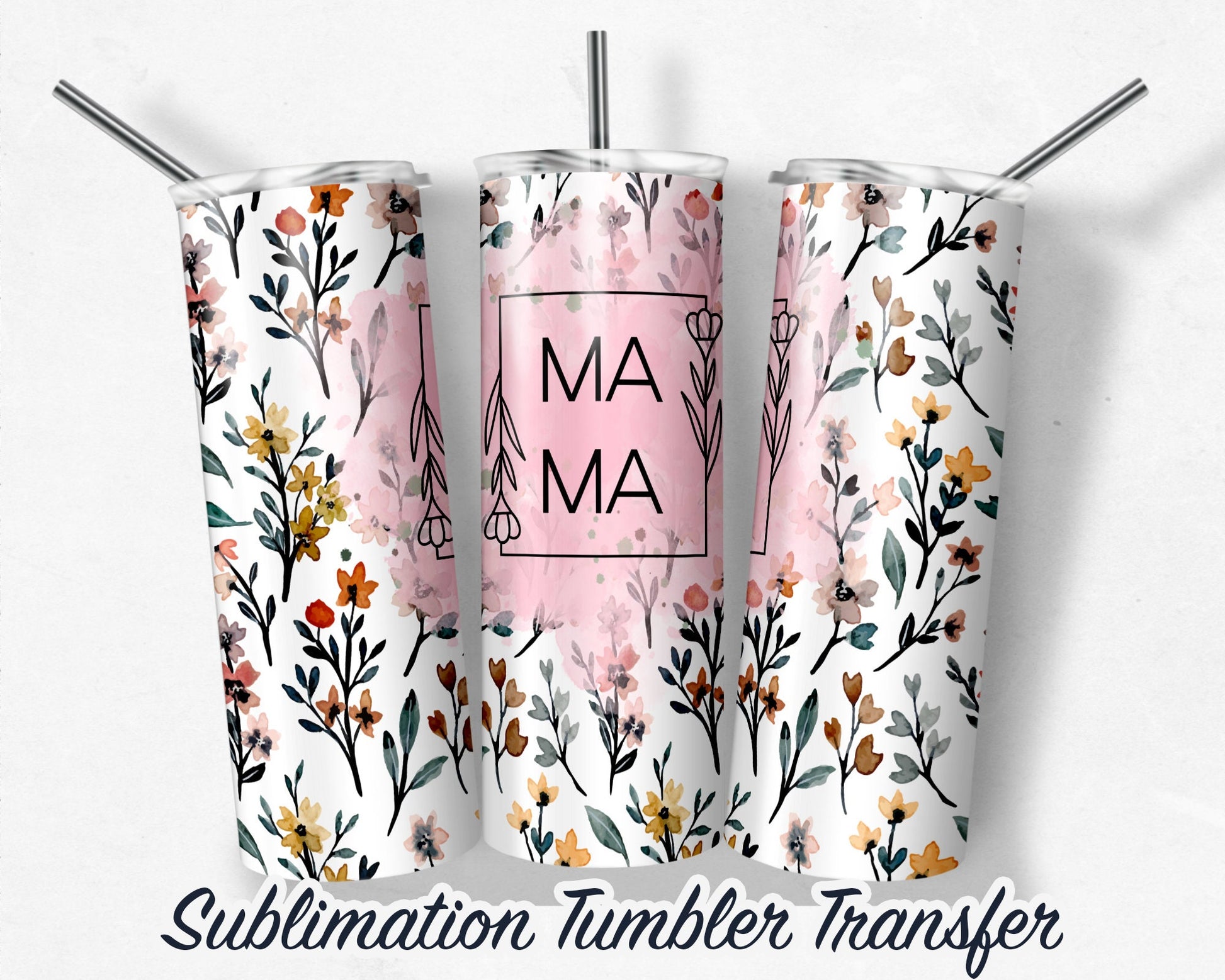 Mama Wild Flowers Sublimation Transfer Print For 20 oz - 30 oz Skinny Tumbler - Ready To Press SHIPS NEXT DAY