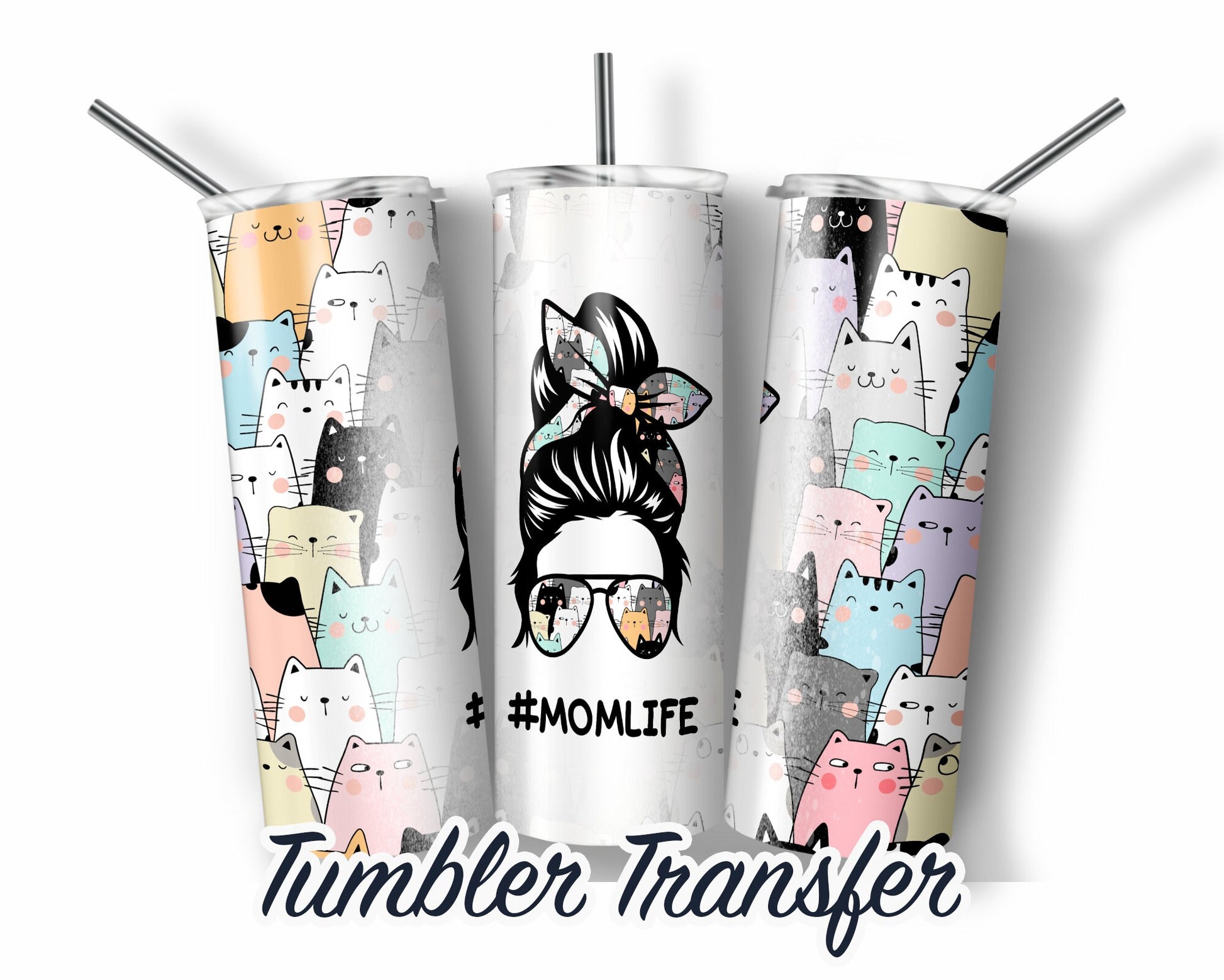 Mom Life Cats Sublimation Transfer Print For 20 oz Tumblers - 30 oz Tumblers - Ready To press - Heat Transfers