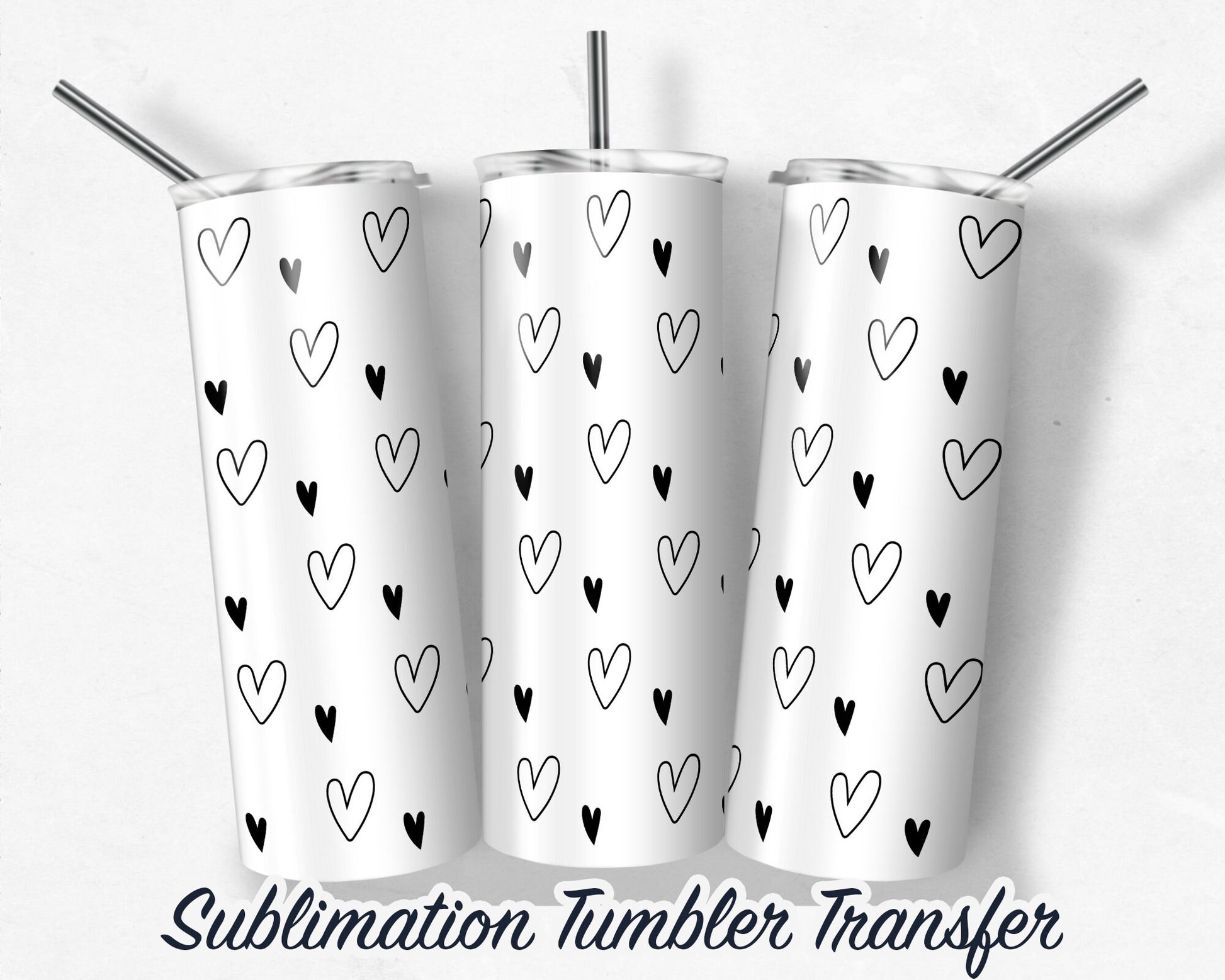 Mono Hearts Tumbler Sublimation Transfer Print For 20 oz Tumbler - 30 oz Tumbler - Ready to Press - Heat Transfer SHIPS NEXT DAY