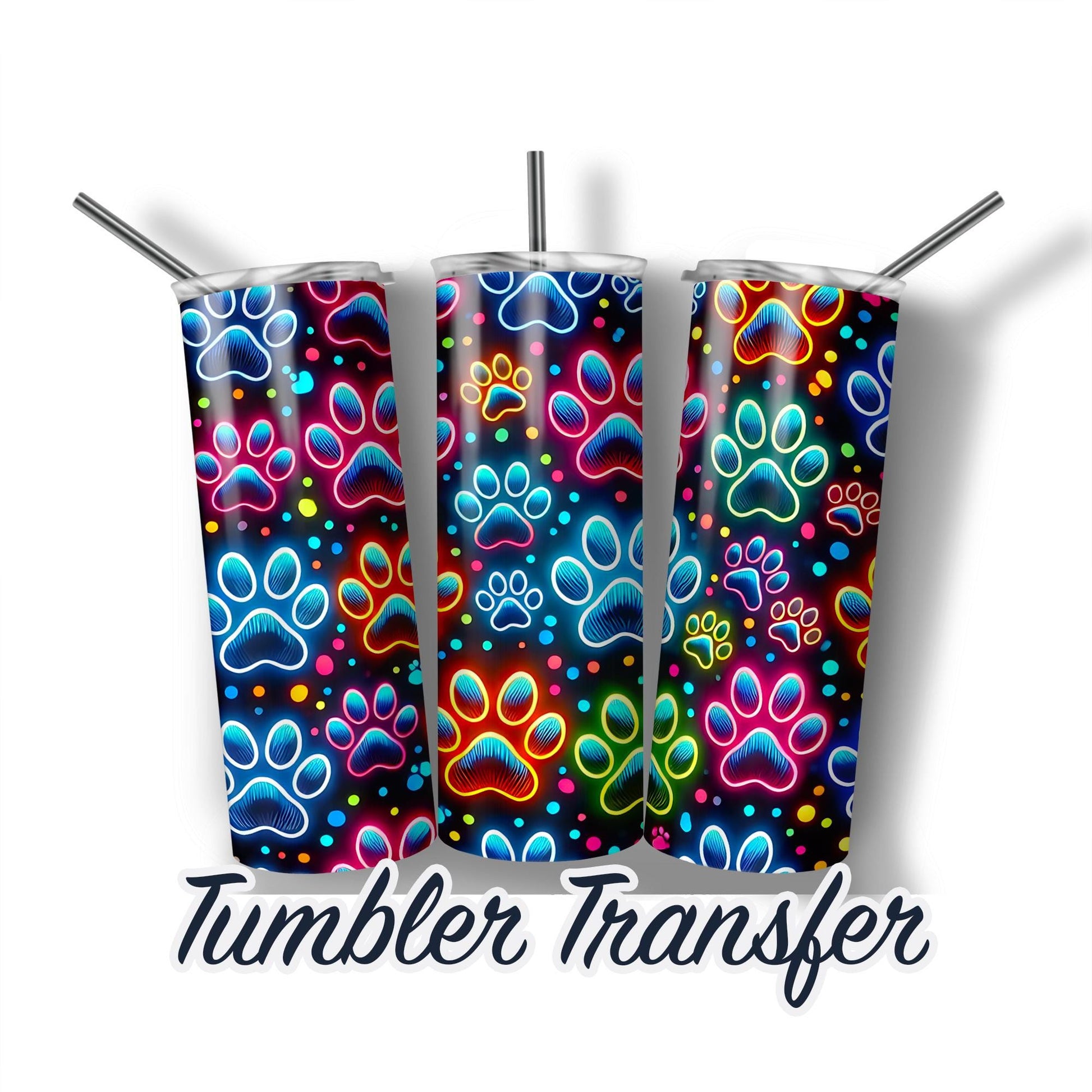 Neon Paw Prints Sublimation Transfer Print For 20 oz Tumbler - 30 oz Skinny Tumbler - Ready To press - Heat Transfer SHIPS NEXT DAY