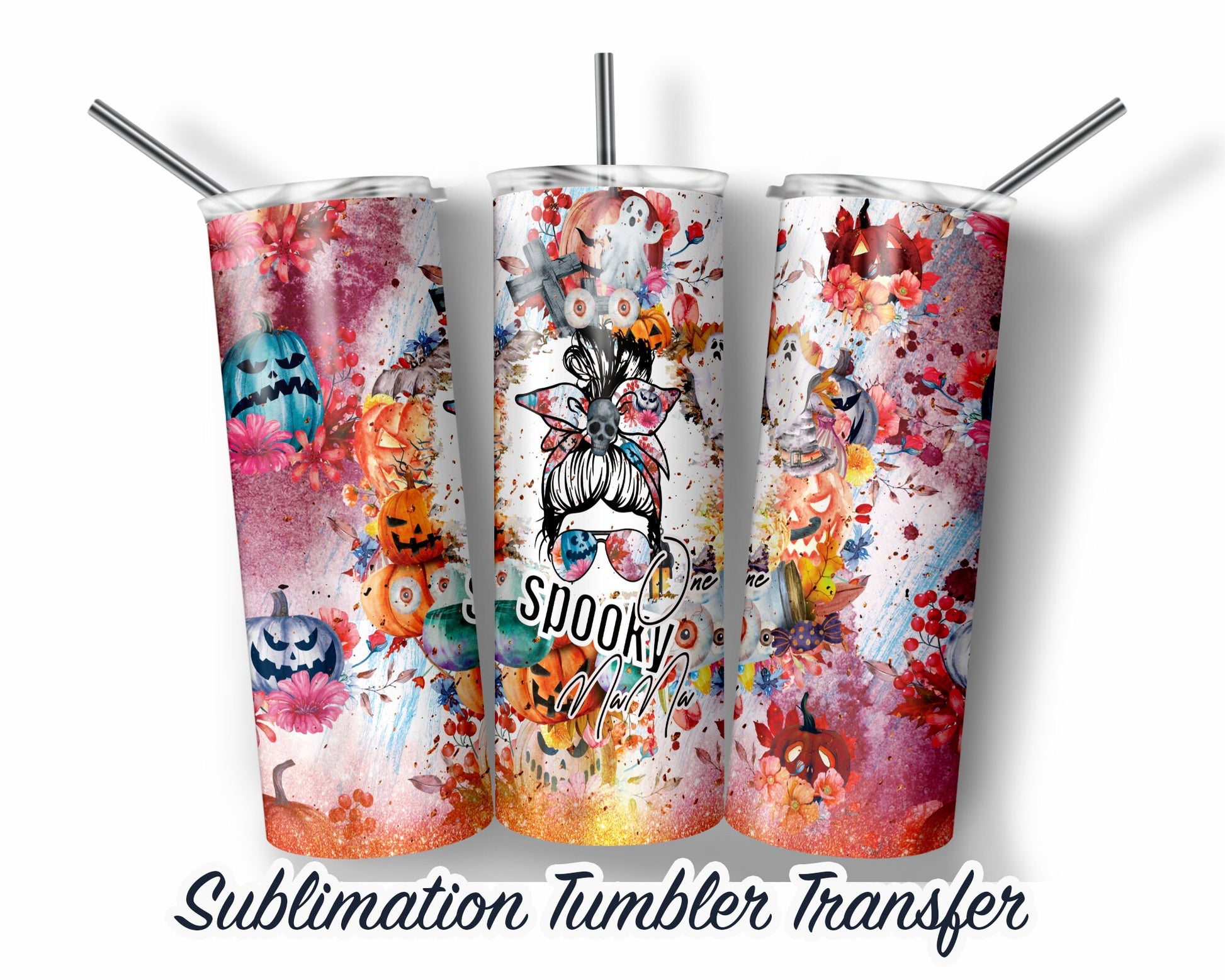 One Spooky Mama Sublimation Transfer Print For 20 oz Tumbler - 30 oz Skinny Tumbler - Ready To press - Heat Transfers
