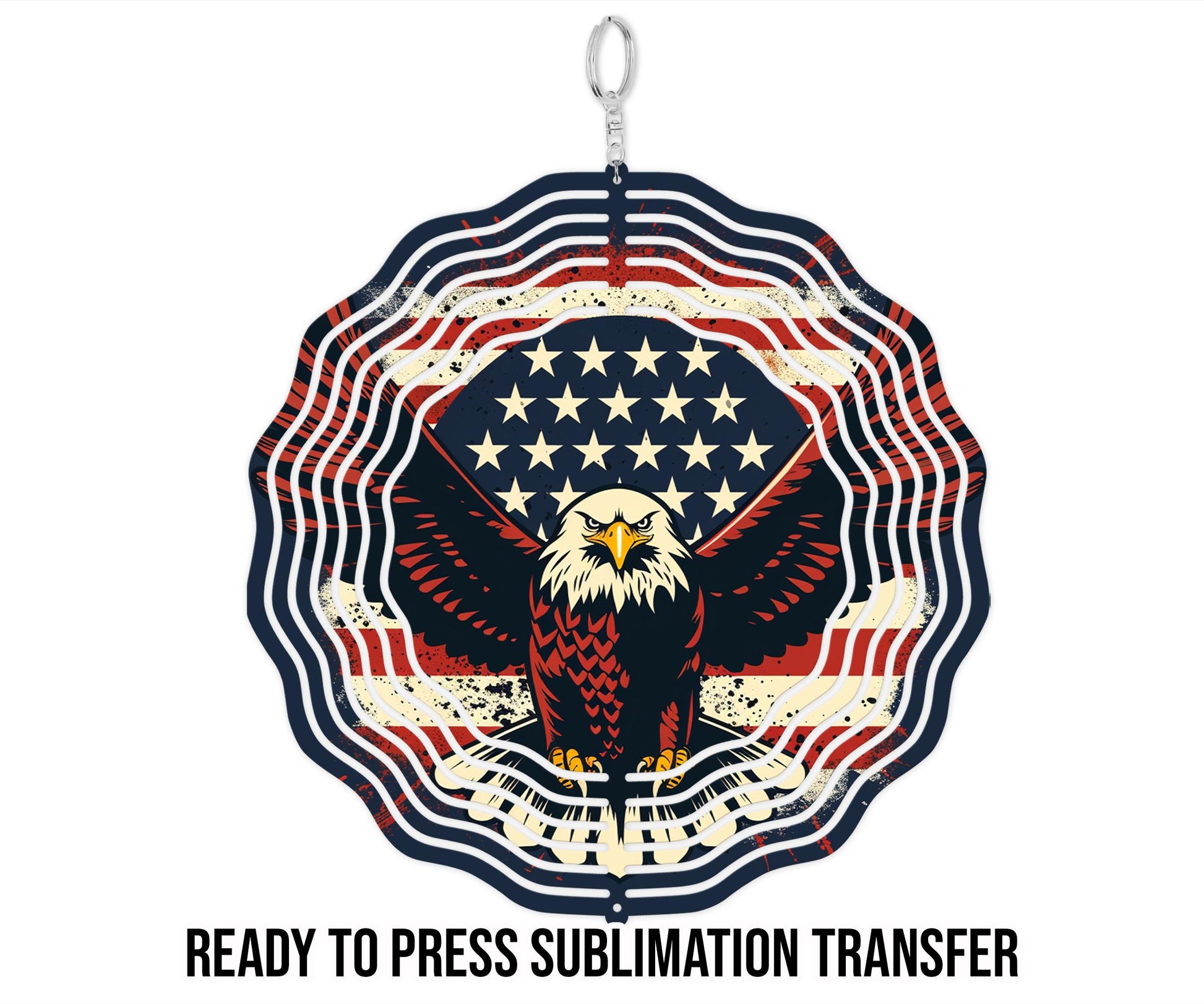 Patriotic Eagle Wind Spinner Sublimation Ready To press Heat Transfer SHIPS NEXT DAY