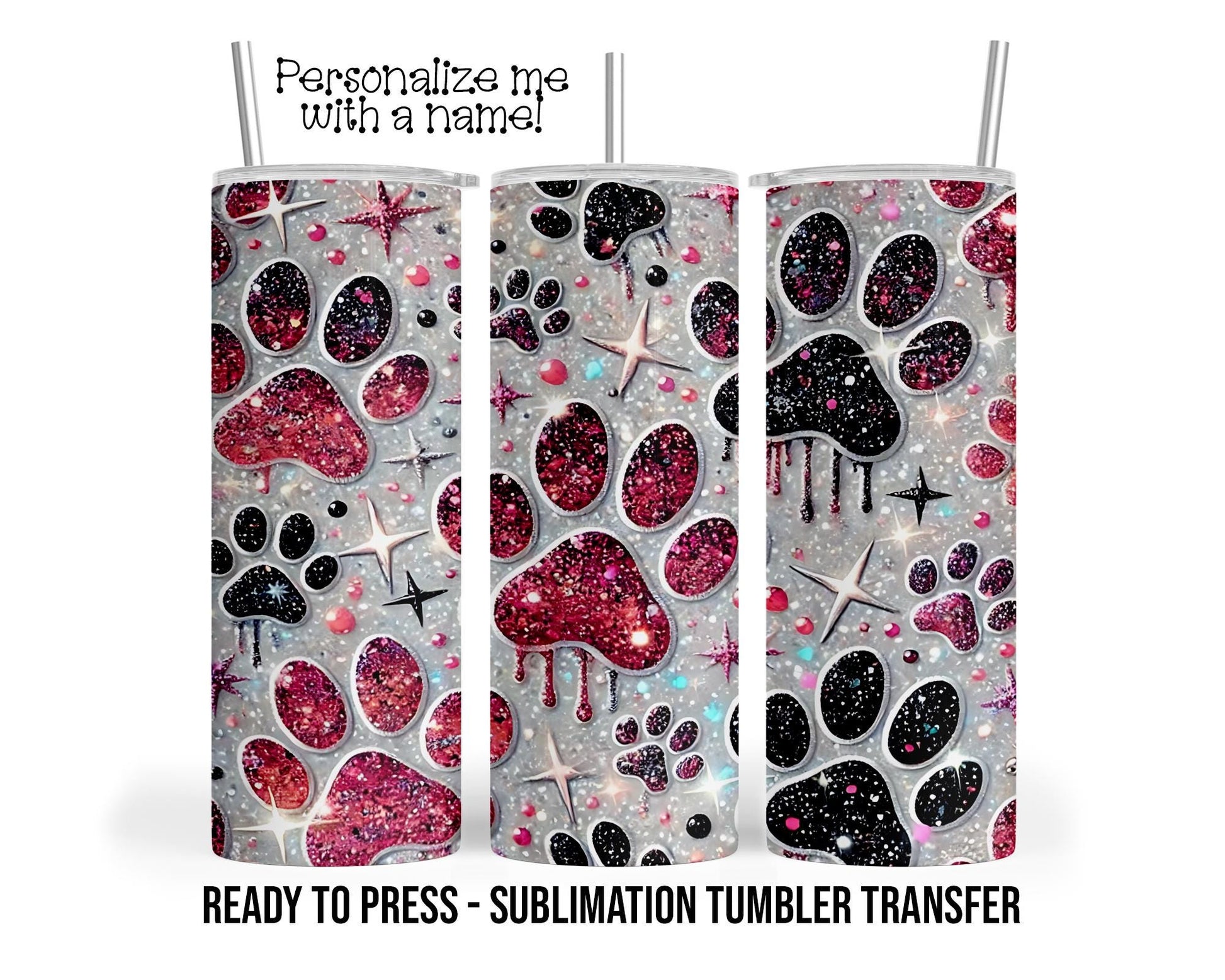Paw Print, Faux Glitter Sublimation Tumbler Transfer Print 20oz Tumbler, Ready To press Heat Transfer SHIPS NEXT DAY