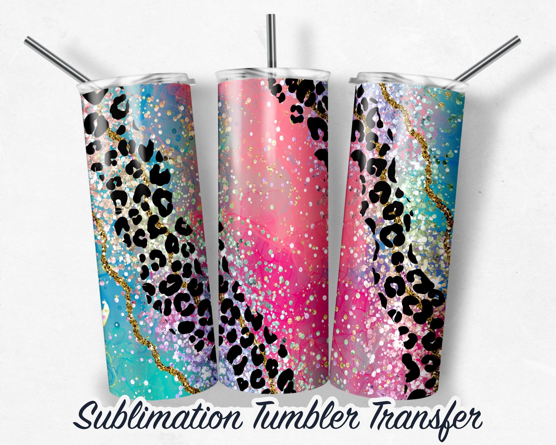Pink Agate Sublimation Transfer Print For 20 oz - 30 oz Skinny Tumbler - Ready To press - Heat Transfers