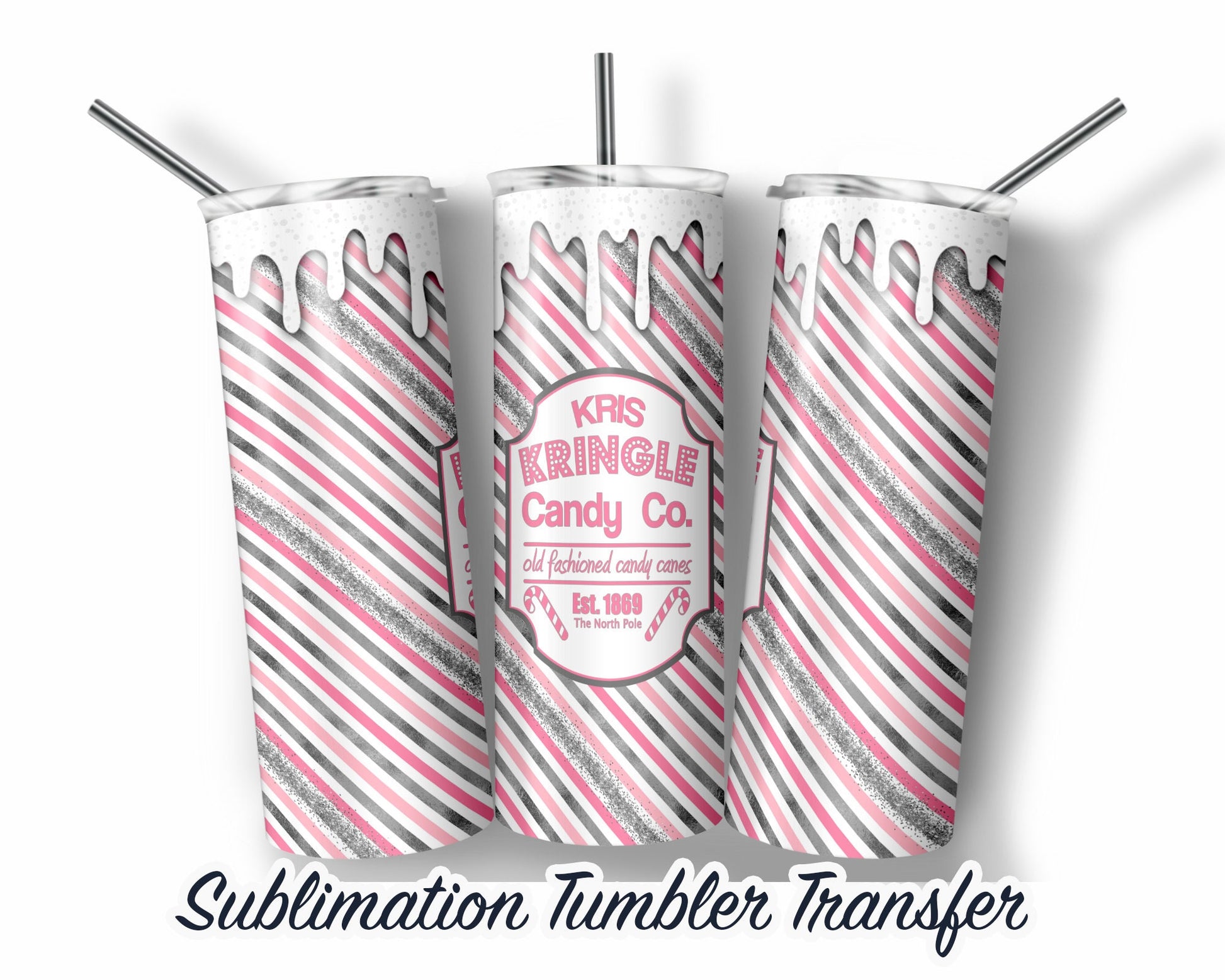 Pink Candy Cane Sublimation Transfer Print For 20 oz Tumblers - 30 oz Tumblers - Ready To press - Heat Transfers SHIPS NEXT DAY