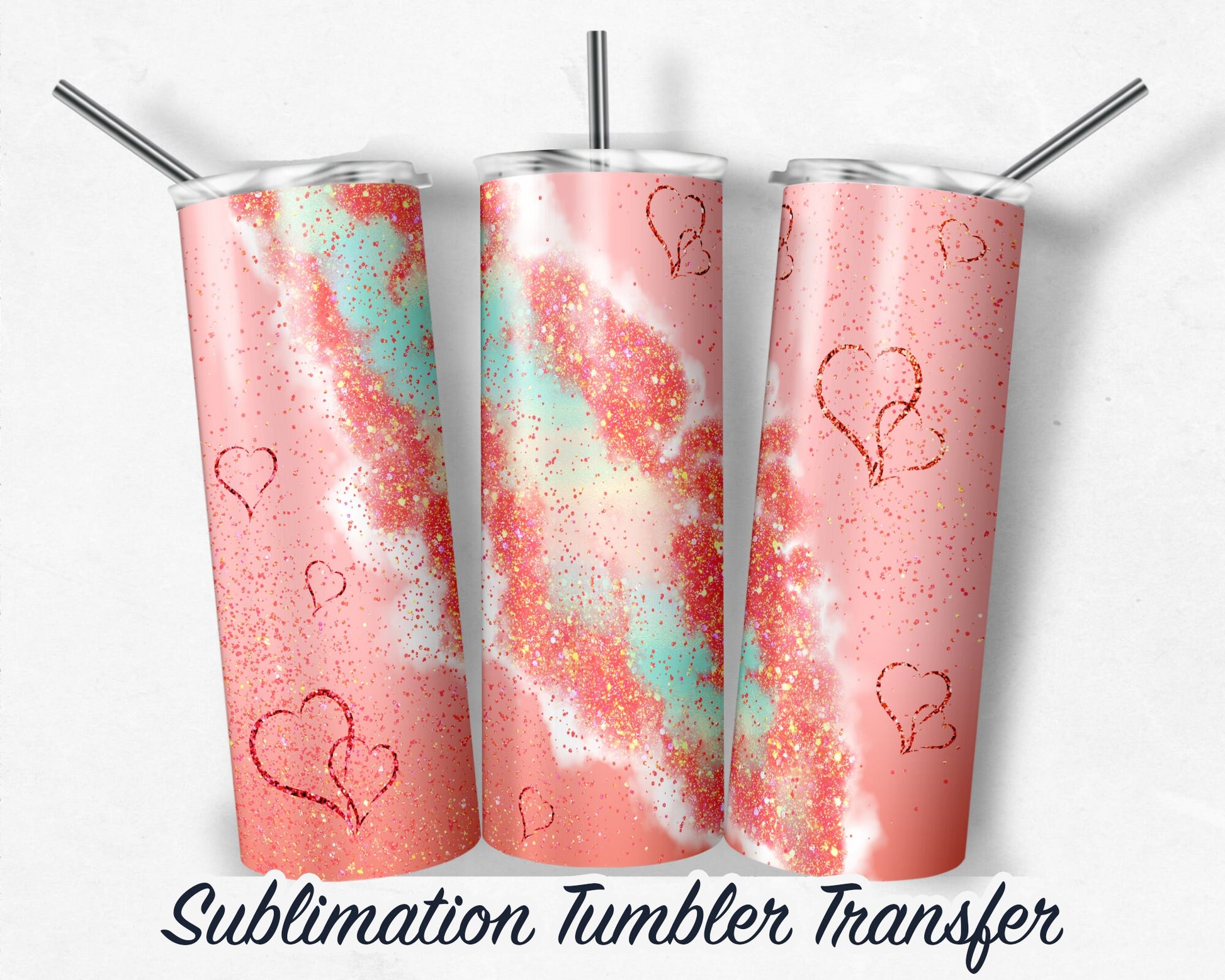 Pink Glitter Hearts - Sublimation Transfer Print For 20 oz - 30 oz Skinny Tumbler - Ready To press - Heat Transfer