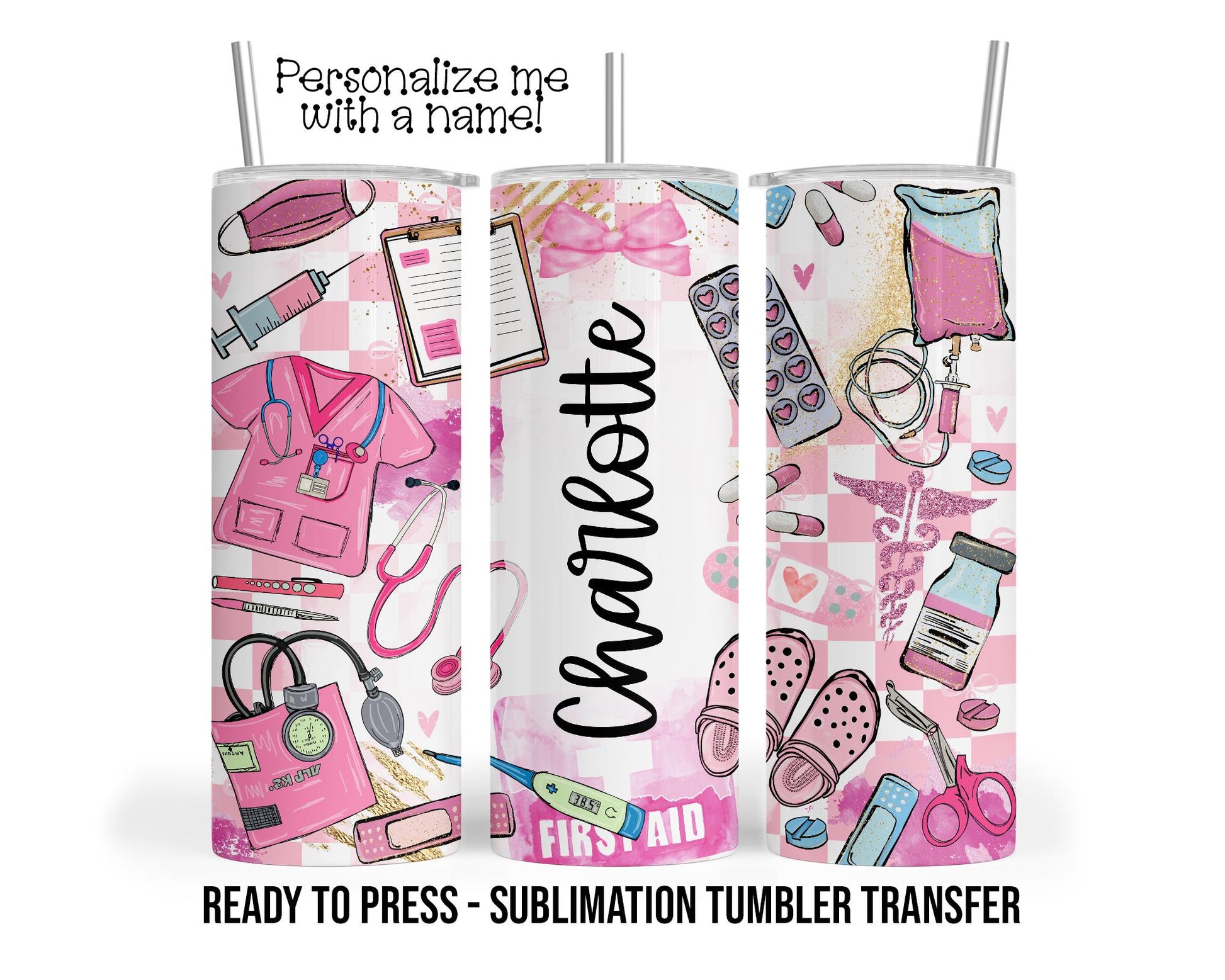Pink Nurse, RN Personalized Sublimation Tumbler Transfer Print 20 oz Tumbler - 30 oz Tumbler Ready To press Heat Transfers SHIPs NEXT DAY