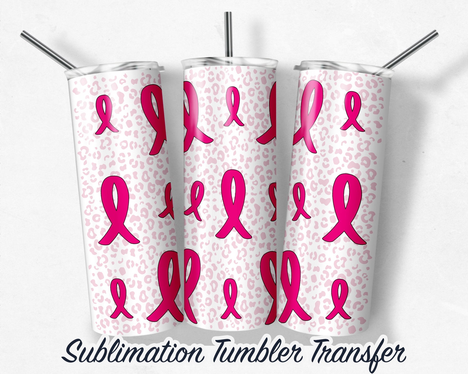 Pink Ribbon Sublimation Transfer Print For 20 oz Tumblers - 30 oz Tumblers - Ready To press - Heat Transfers SHIPS NEXT DAY
