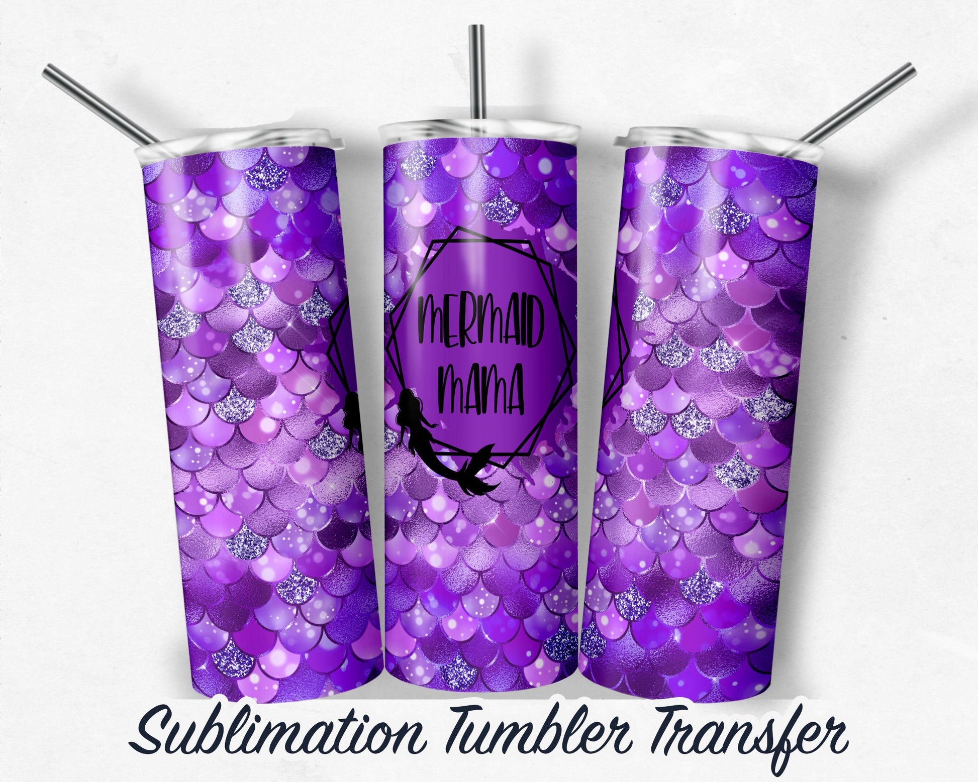 Purple Mermaid Sublimation Transfer Print For 20 oz Tumblers - 30 oz Tumblers - Ready To press - Heat Transfers SHIPS NEXT DAY