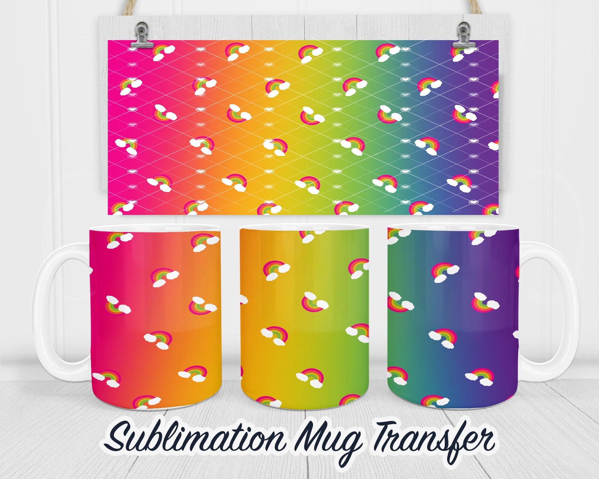 Rainbow - Sublimation Transfer Print For 11 oz - 15 oz Mugs - Ready To press - Heat Transfer