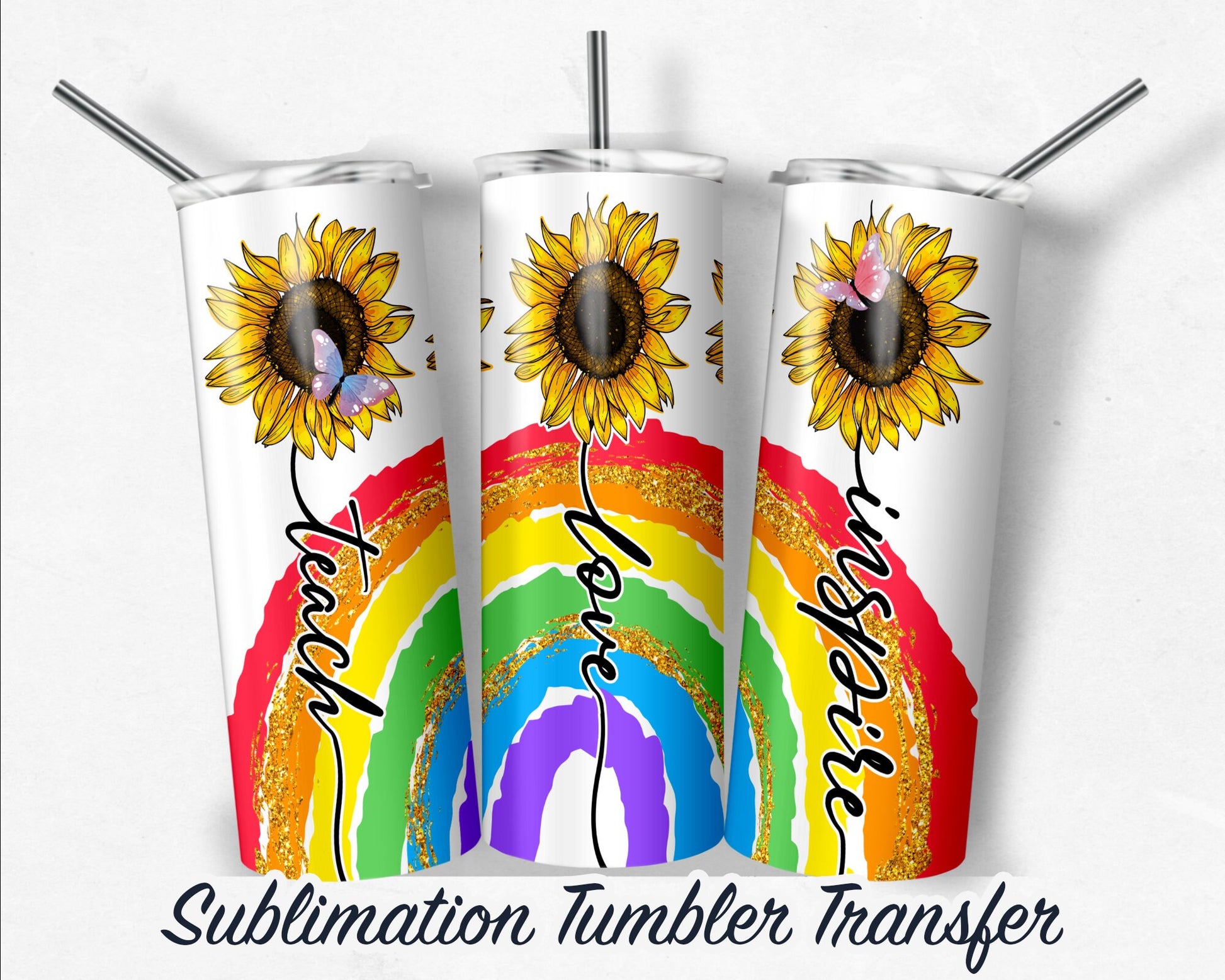 Rainbow Teacher Sublimation Transfer Print For 20 oz Tumblers - 30 oz Tumblers - Ready To press - Heat Transfers