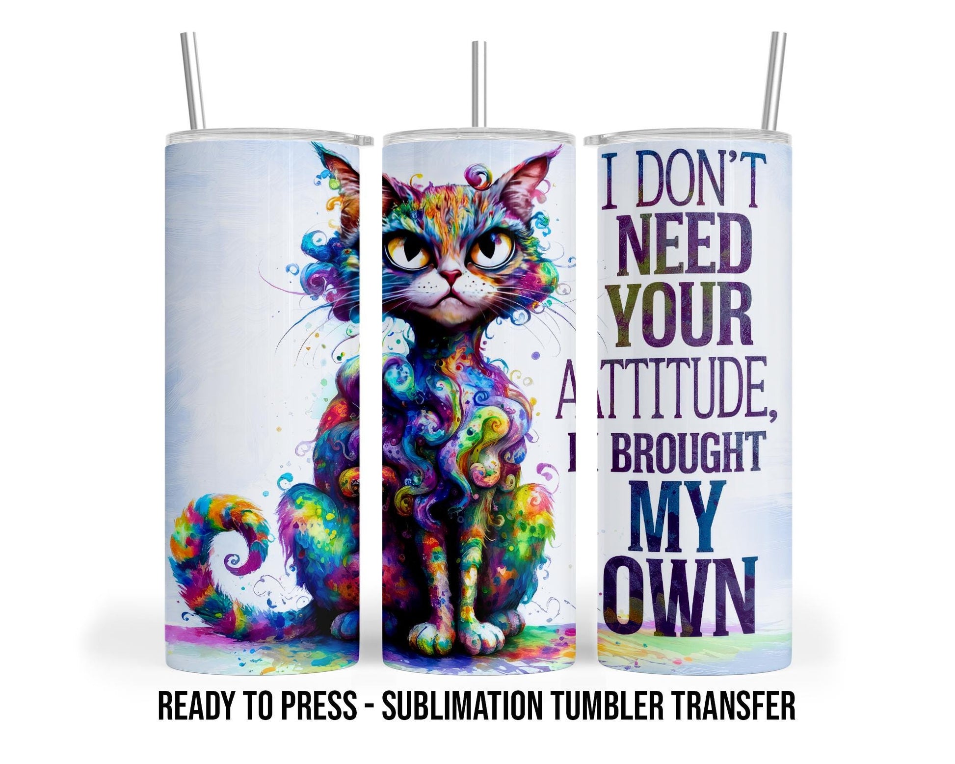 Snarky Cat Sublimation Transfer Print For 20 oz Tumblers - 30 oz Tumblers - Ready To press Heat Transfers SHIPS NEXT DAY