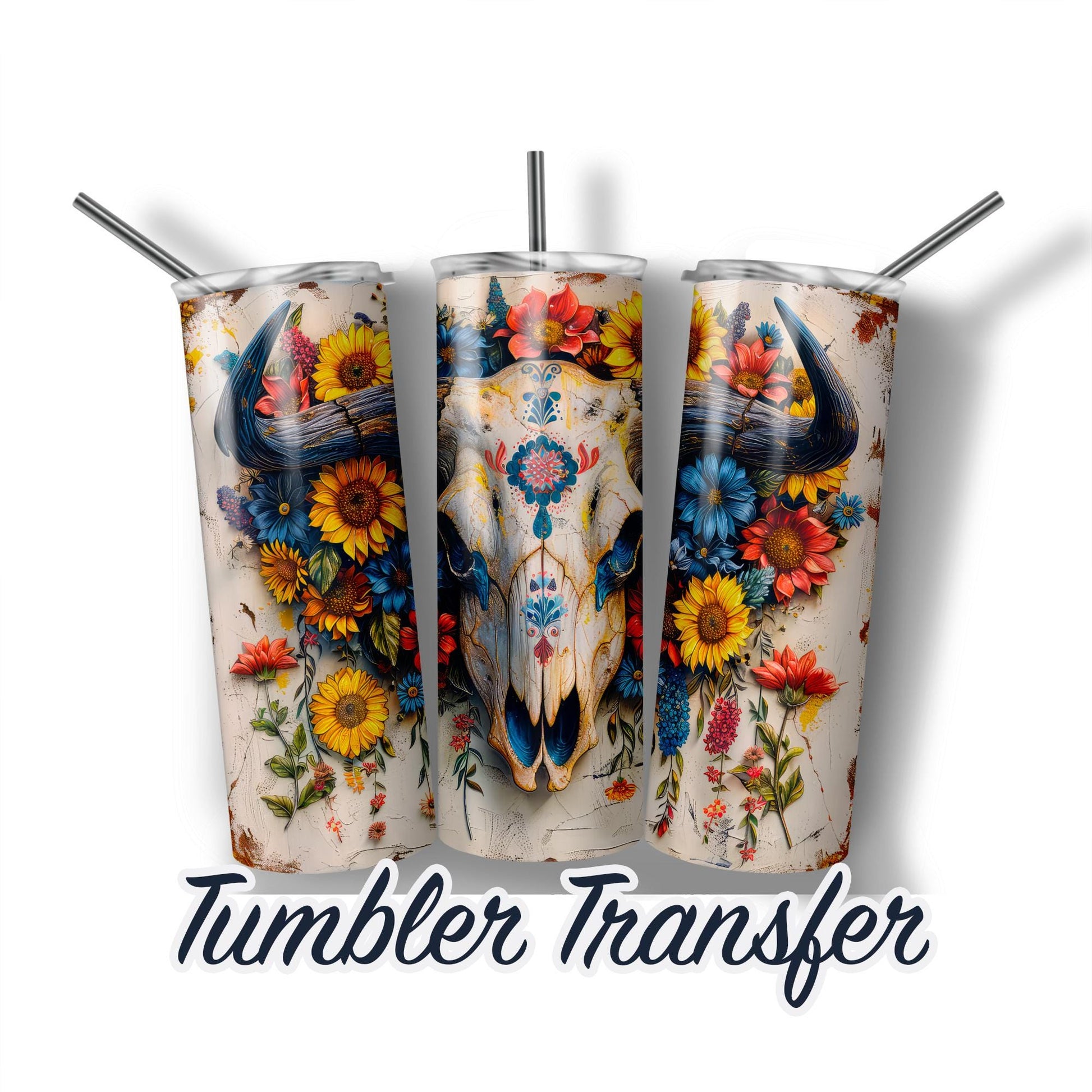 Southwestern Bull Skull Sublimation Transfer Print For 20 oz Tumblers - 30 oz Tumblers - Ready To press - Heat Transfers READY TO PRESS