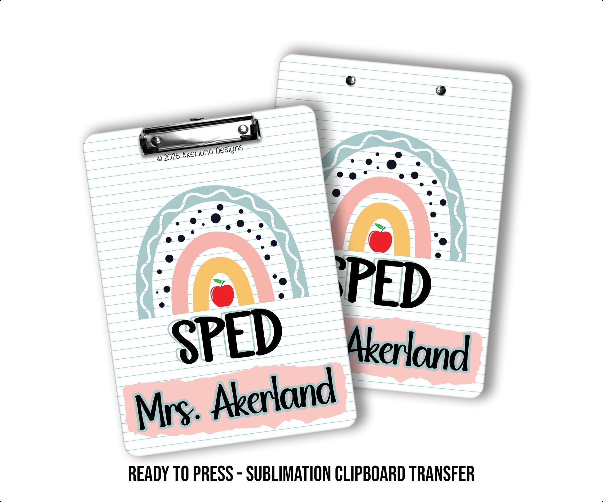 Special Education Teacher Theme Sublimation Clipboard Ready to Press Transfer with personalization SHIPS NEXT DAY