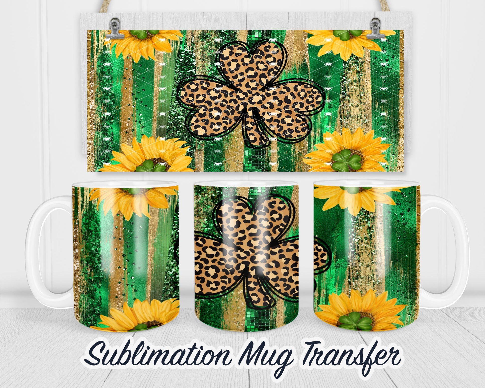 St. Patrick's Day - Clovers - Shamrock- Sublimation Transfer Print For 11 oz 15 oz Mugs - Ready To press - Heat Transfer