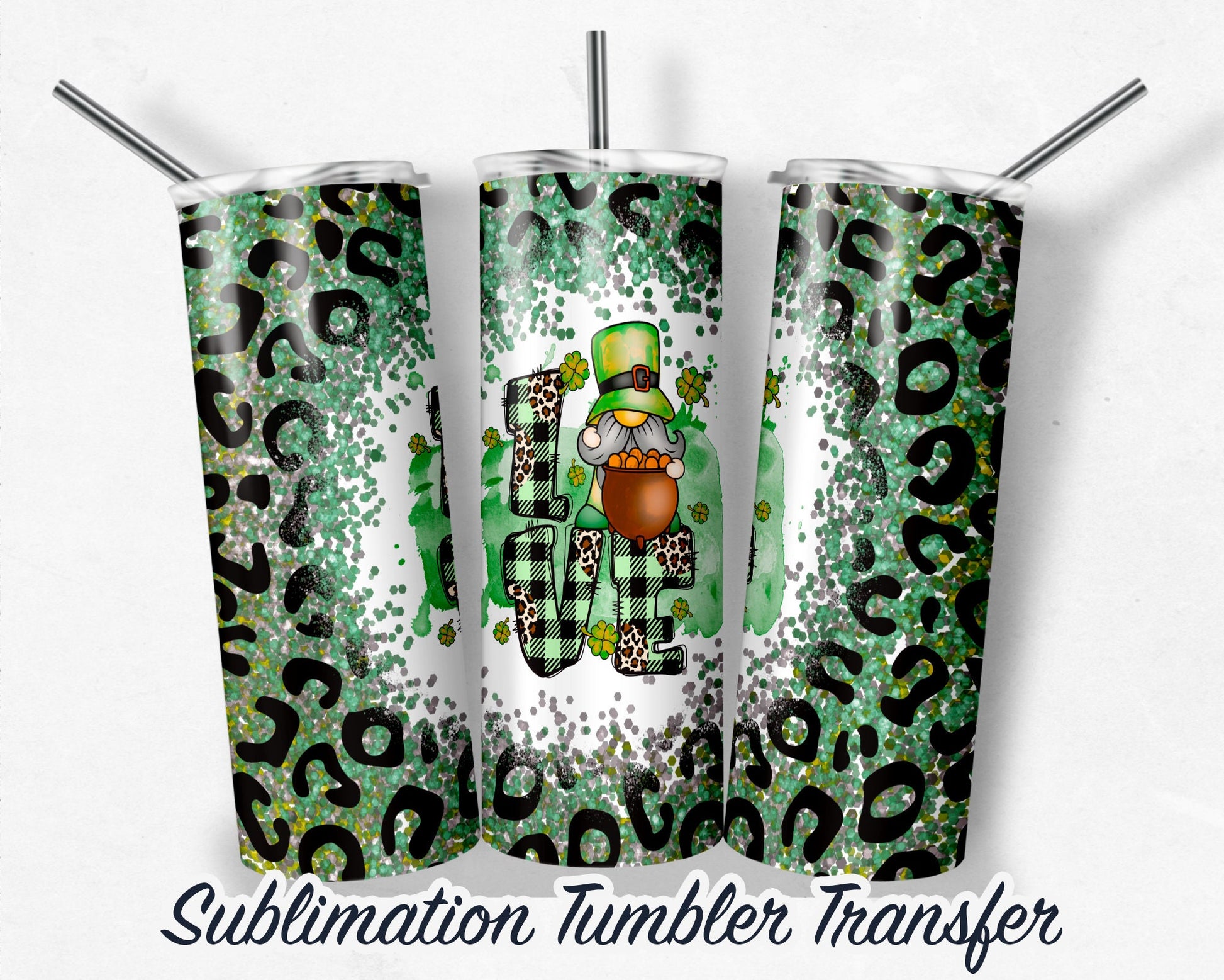 St. Patrick's Day LOVE Gnomes Sublimation Transfer Print For 20 - 30 oz Tumblers - Ready to Press - Heat Transfers