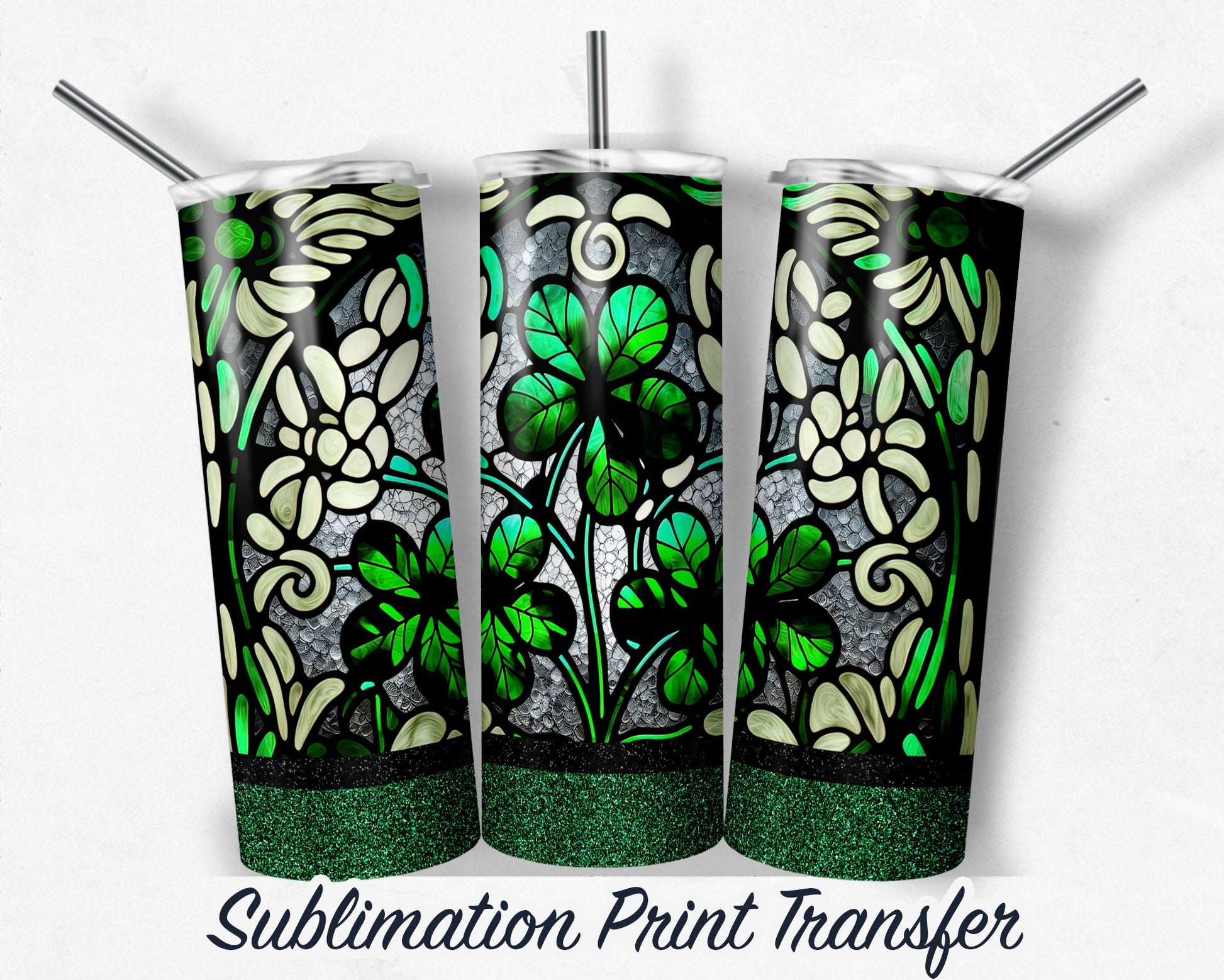 St. Patrick's Day Shamrock Clover Sublimation Print For 20 oz Skinny Tumbler - 30oz Skinny Tumbler - Ready to Press - Heat Transfers