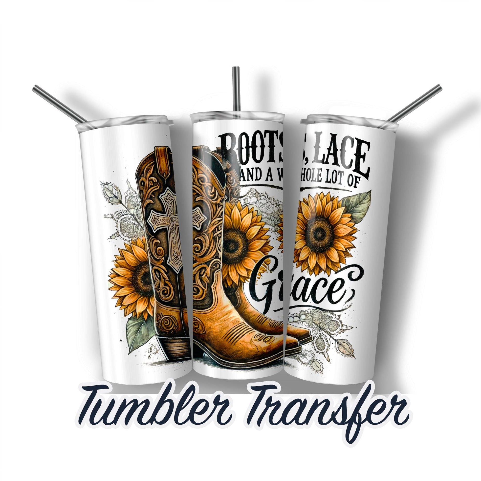 Sunflower Boots - Rustic Cowboy Boots Sublimation Transfer Print For 20 oz - 30 oz Skinny Tumbler - Ready To press - Heat Transfers