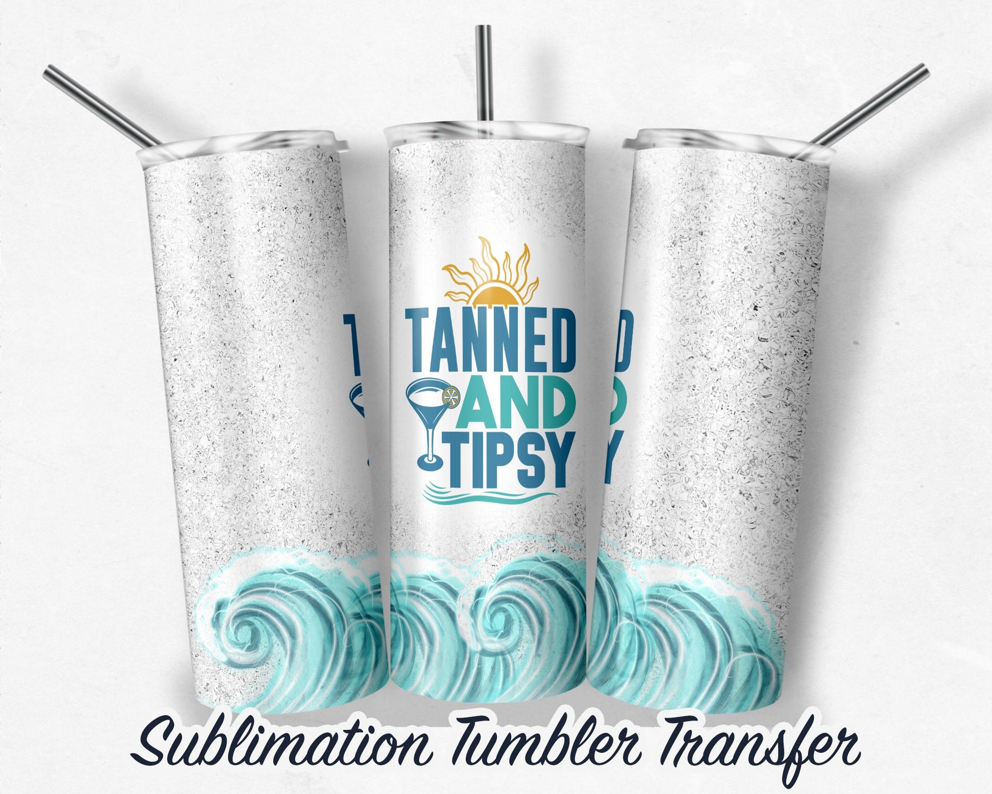 Tanned and Tipsy - Sublimation Transfer Print For 20 oz Tumbler - 30 oz Skinny Tumbler - Ready To press - Heat Transfers SHIPS NEXT DAY