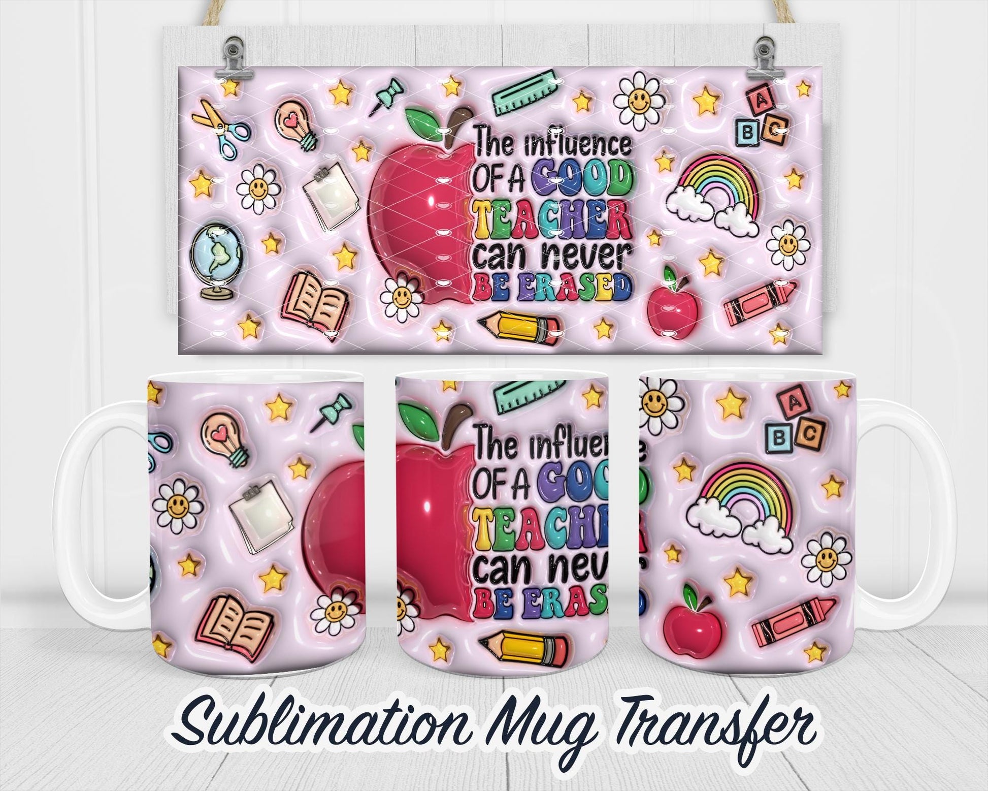 Teacher 3d Puff Coffee Mug Sublimation Transfer Print - 11 oz - 15 oz Coffee Mugs - Ready To press - Heat Transfers SHIPS NEXT DAY