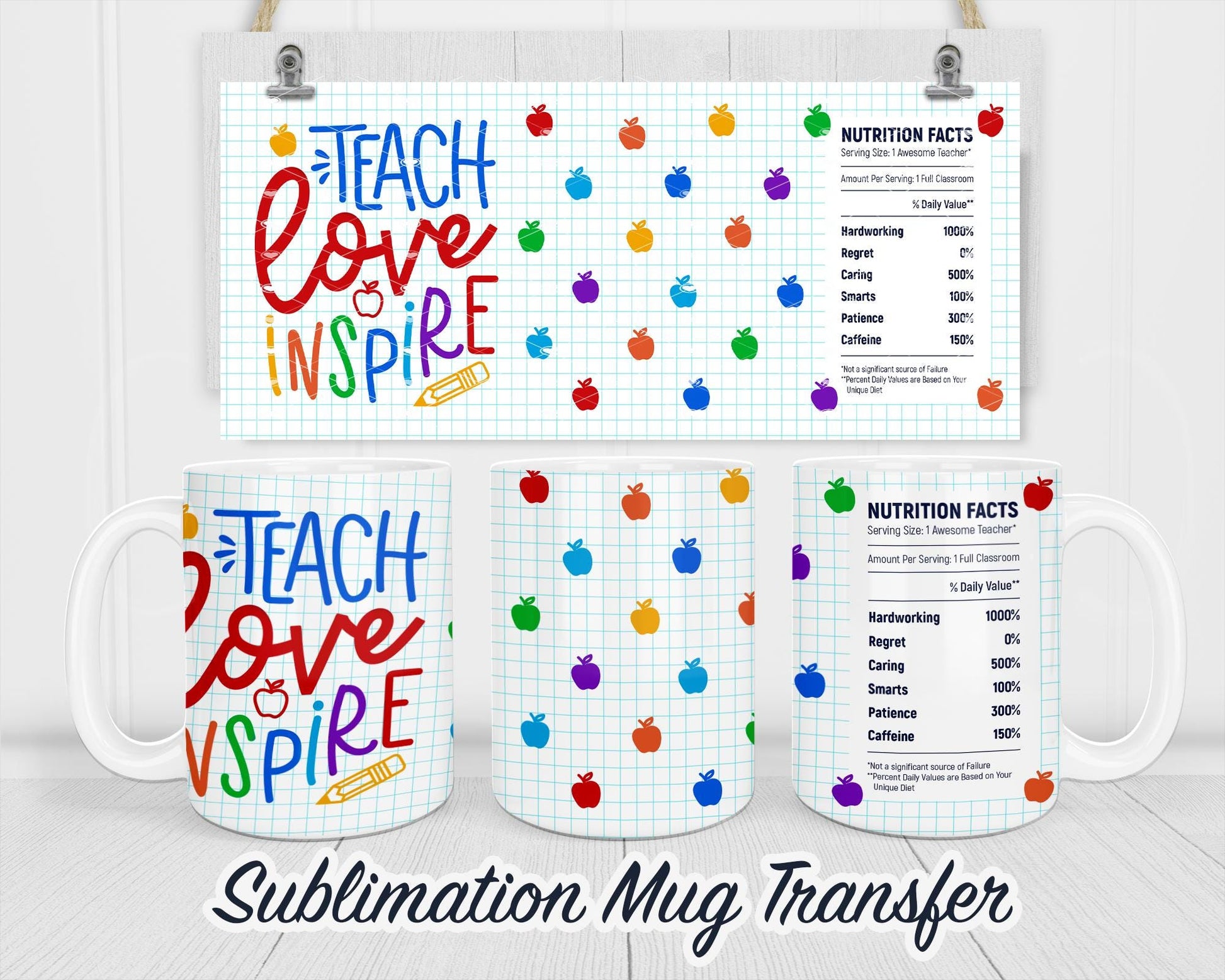 Teacher Nutrition Facts Sublimation Mug Transfer Print For 11 oz - 15 oz Mugs - Ready To press Heat Transfer SHIPS NEXT DAY