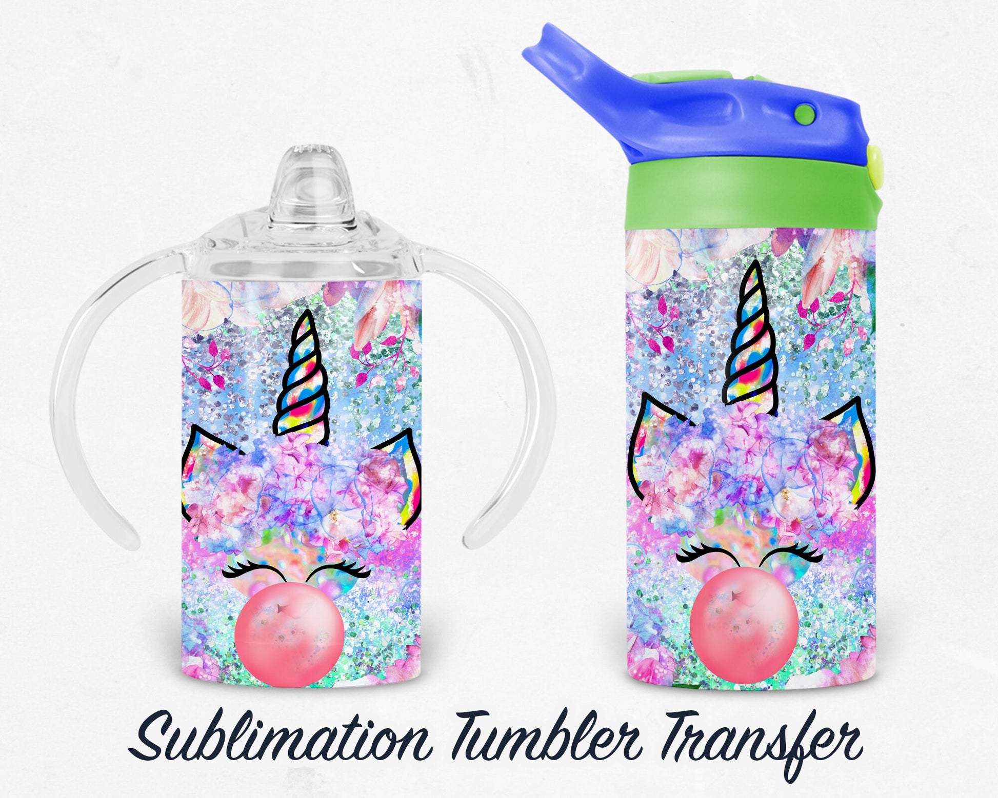 Unicorn Kids 12 oz Sippy Sublimation Tumbler Transfer - Ready To press - Heat Transfers SHIPS NEXT DAY