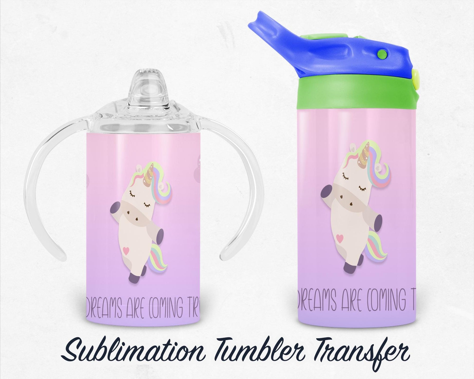 Unicorn Kids 12 oz Sippy Sublimation Tumbler Transfer - Ready To press - Heat Transfers SHIPS NEXT DAY