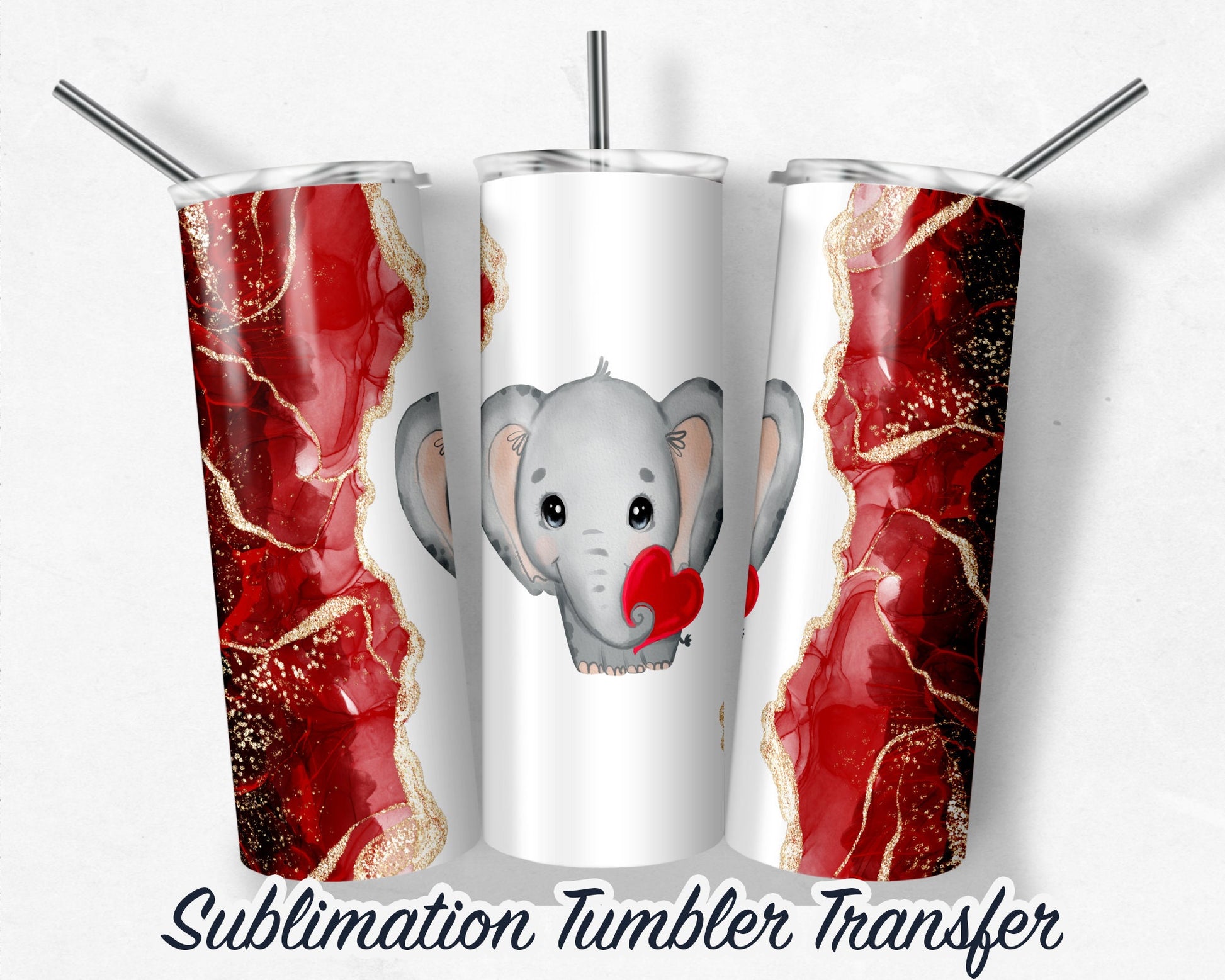 Valentines Day Elephant Sublimation Transfer Print For 20 oz Tumblers - 30 oz Tumblers - Ready To press - Heat Transfers