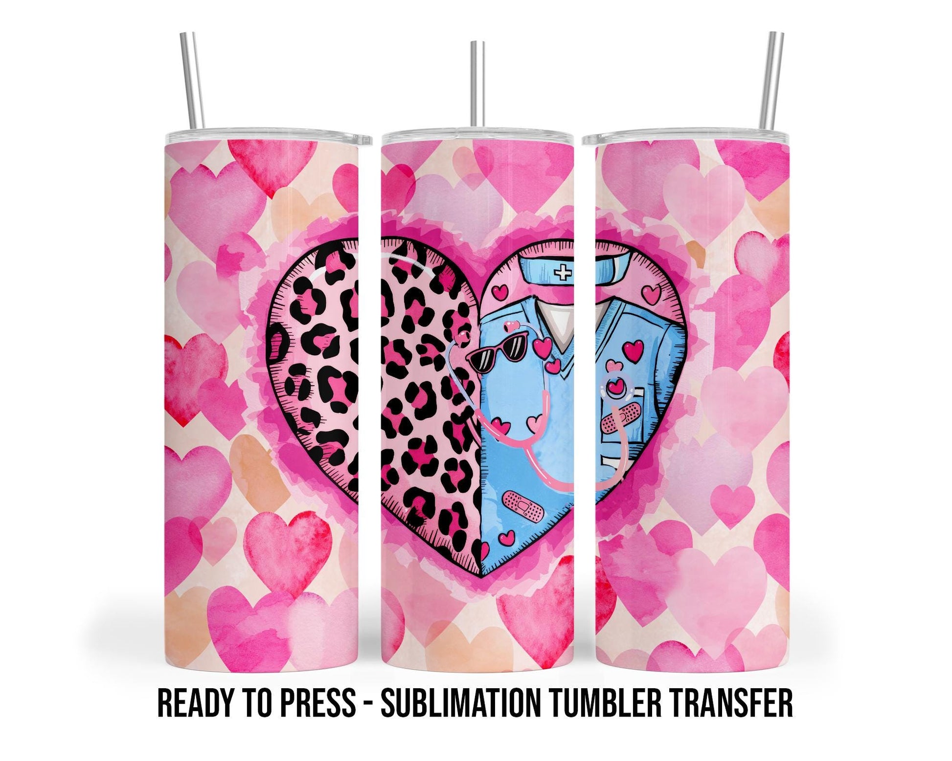 Valentines Nurse Theme Sublimation Transfer Print 20 oz Tumblers and 30 oz Tumblers - Ready To press - Heat Transfers SHIPS NEXT DAY