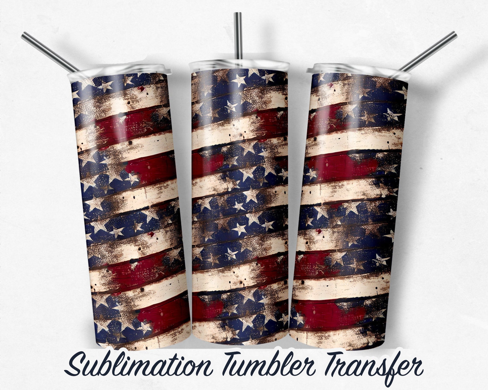 Vintage Patriotic Distressed Wood Sublimation Transfer Print 20 oz - 30 oz Skinny Tumbler - Ready to Press - Heat Transfers SHIPS NEXT DAY